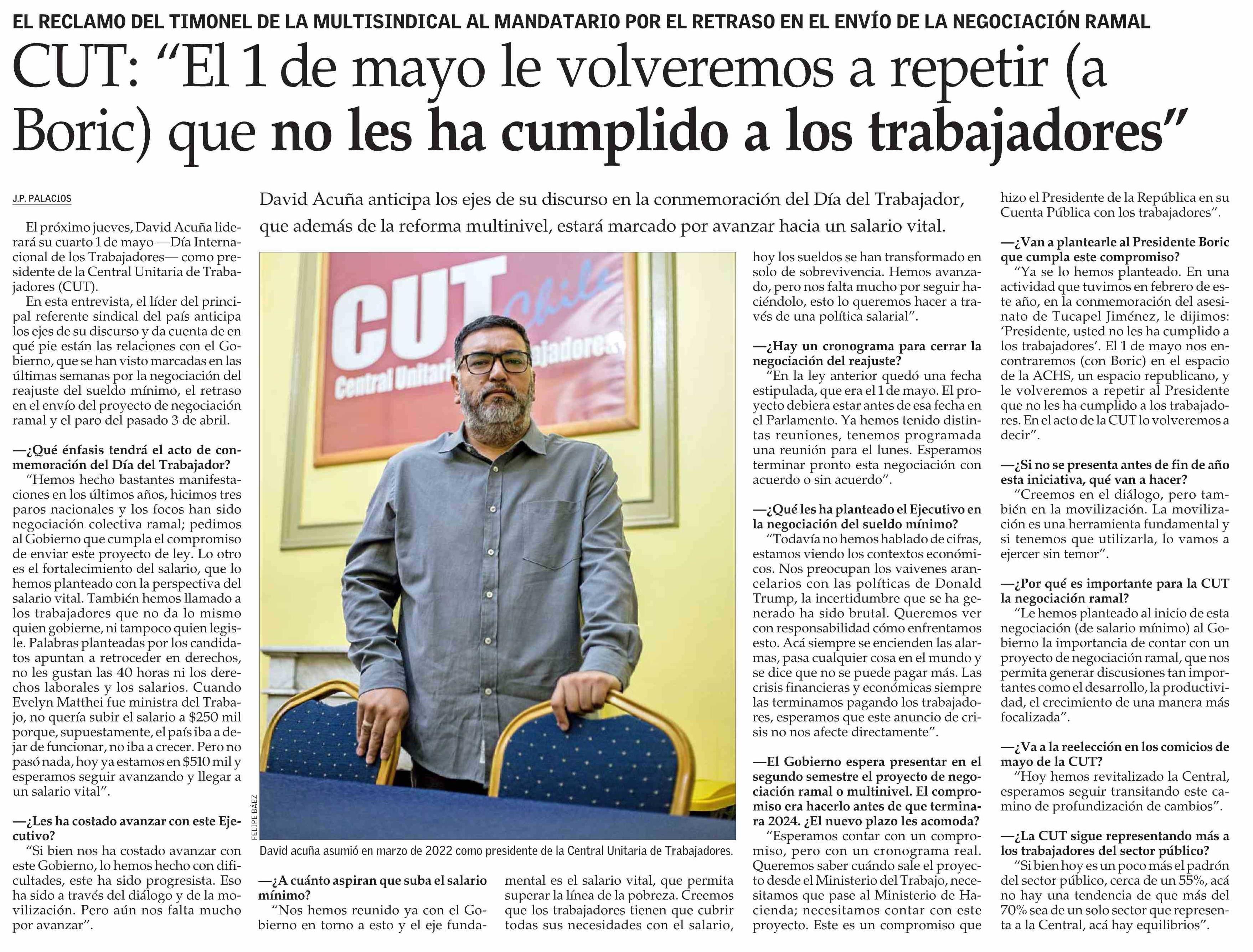 CUT: “El 1 de mayo le volveremos a repetir (a Boric) que no les ha cumplido a los trabajadores”