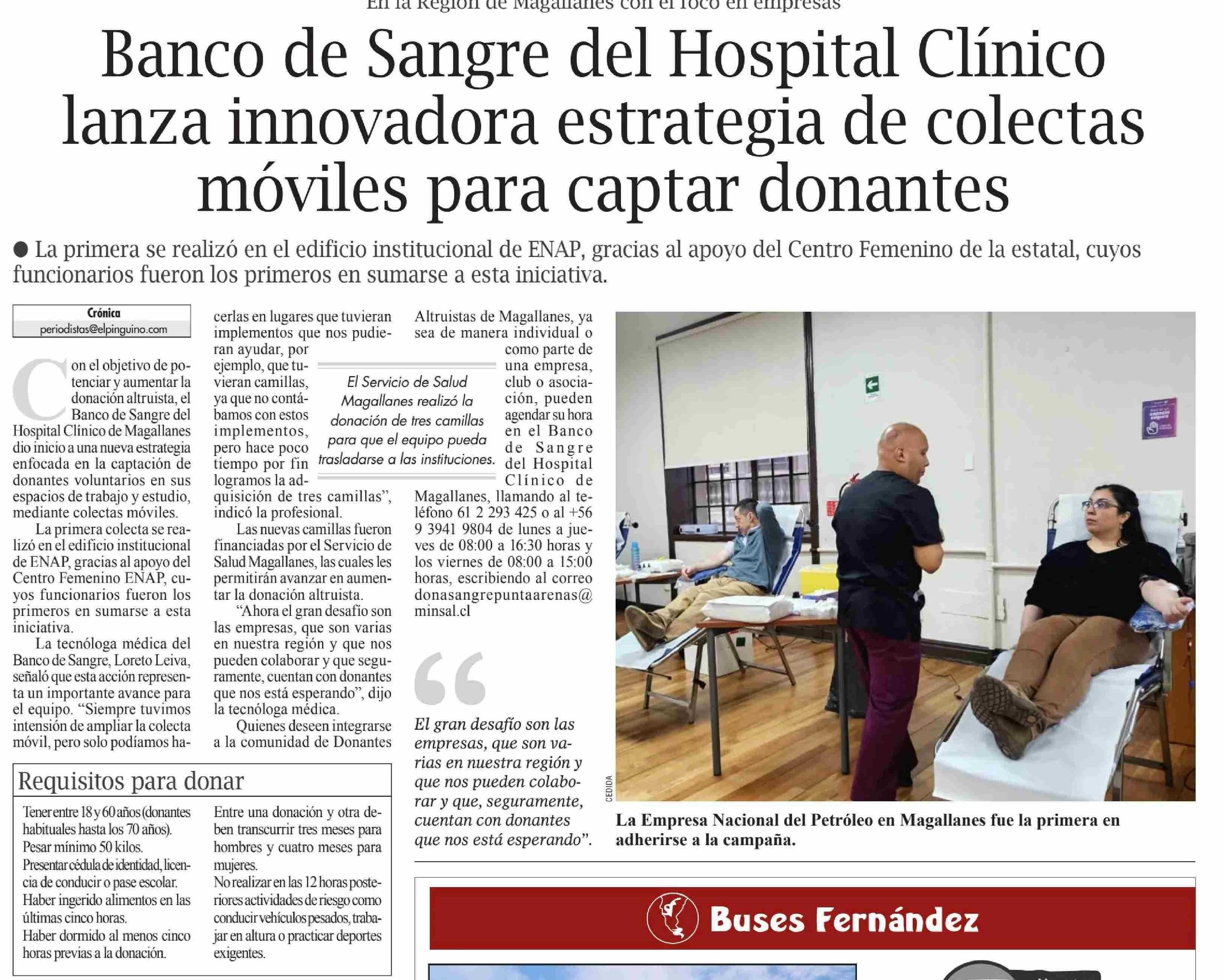 Banco de Sangre del Hospital Clínico lanza innovadora estrategia de colectas móviles para captar donantes
