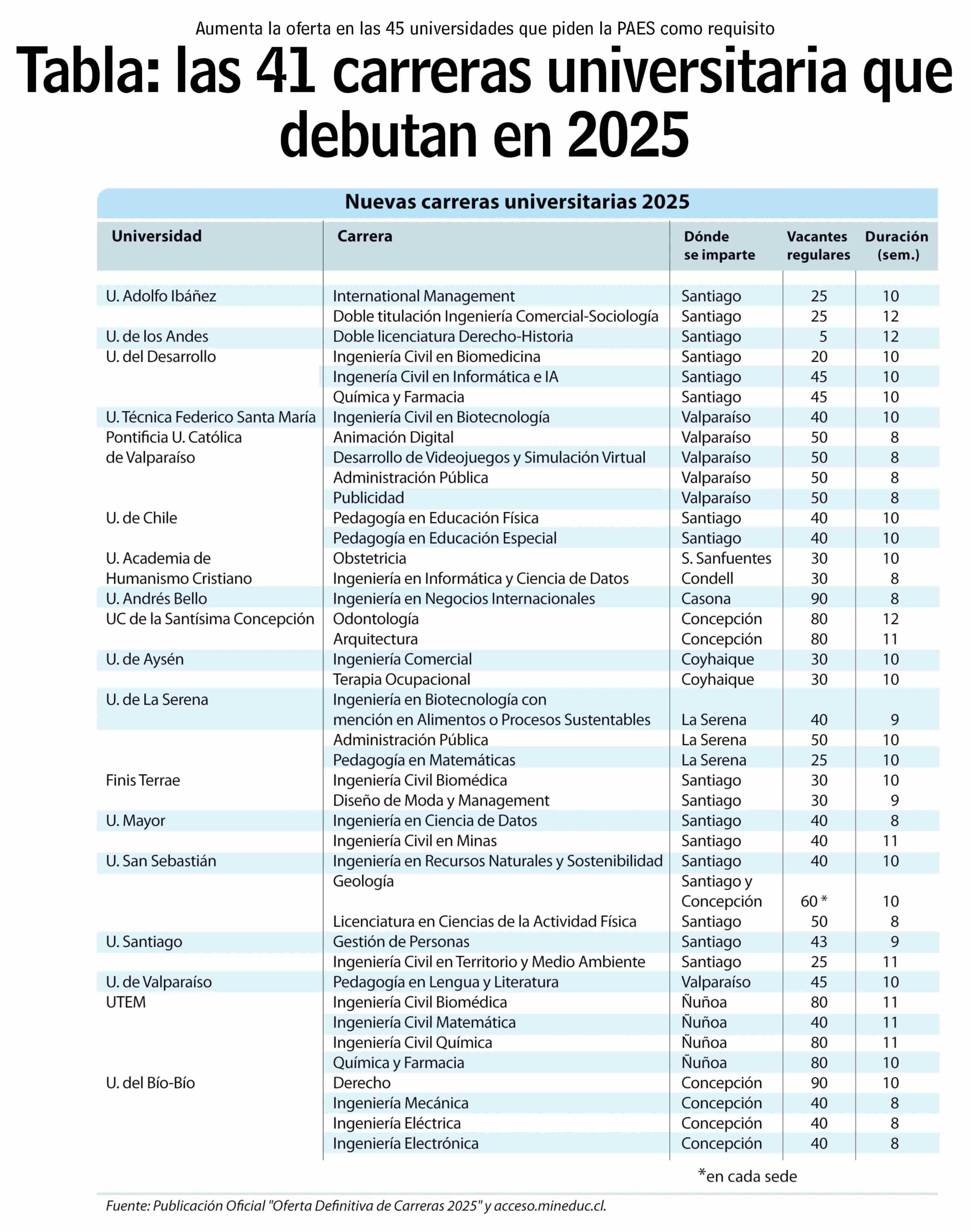 Tabla: las 41 carreras universitaria que debutan en 2025