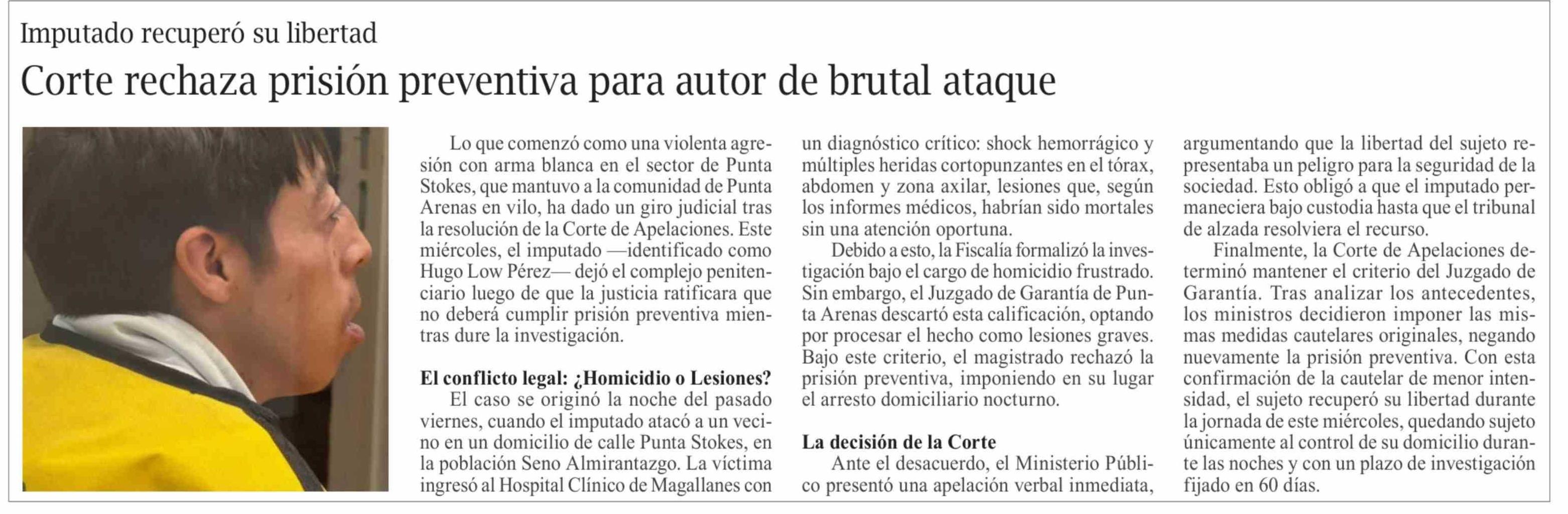 Corte rechaza prisión preventiva para autor de brutal ataque