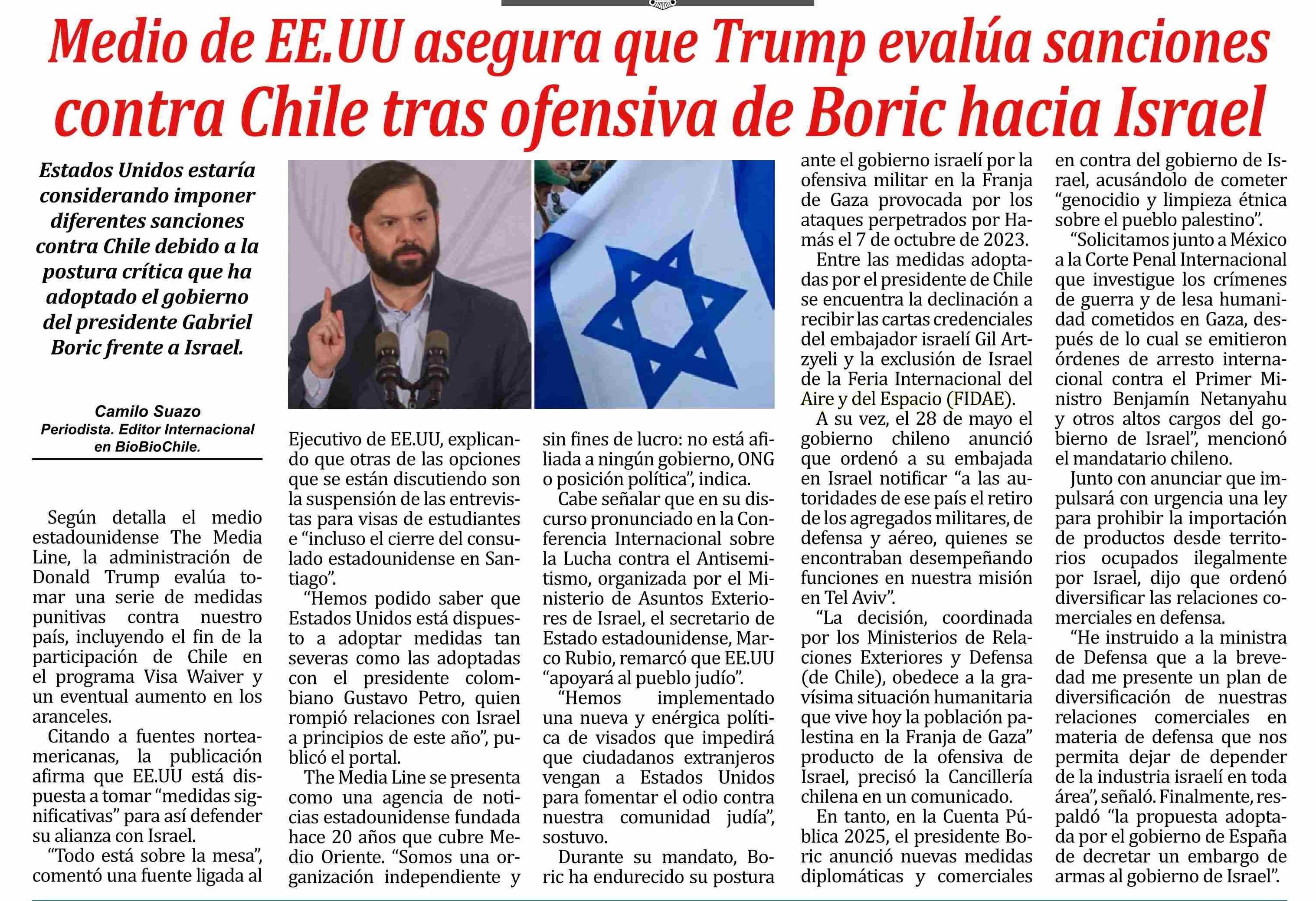 Medio de EE.UU asegura que Trump evalúa sanciones contra Chile tras ofensiva de Boric hacia Israel