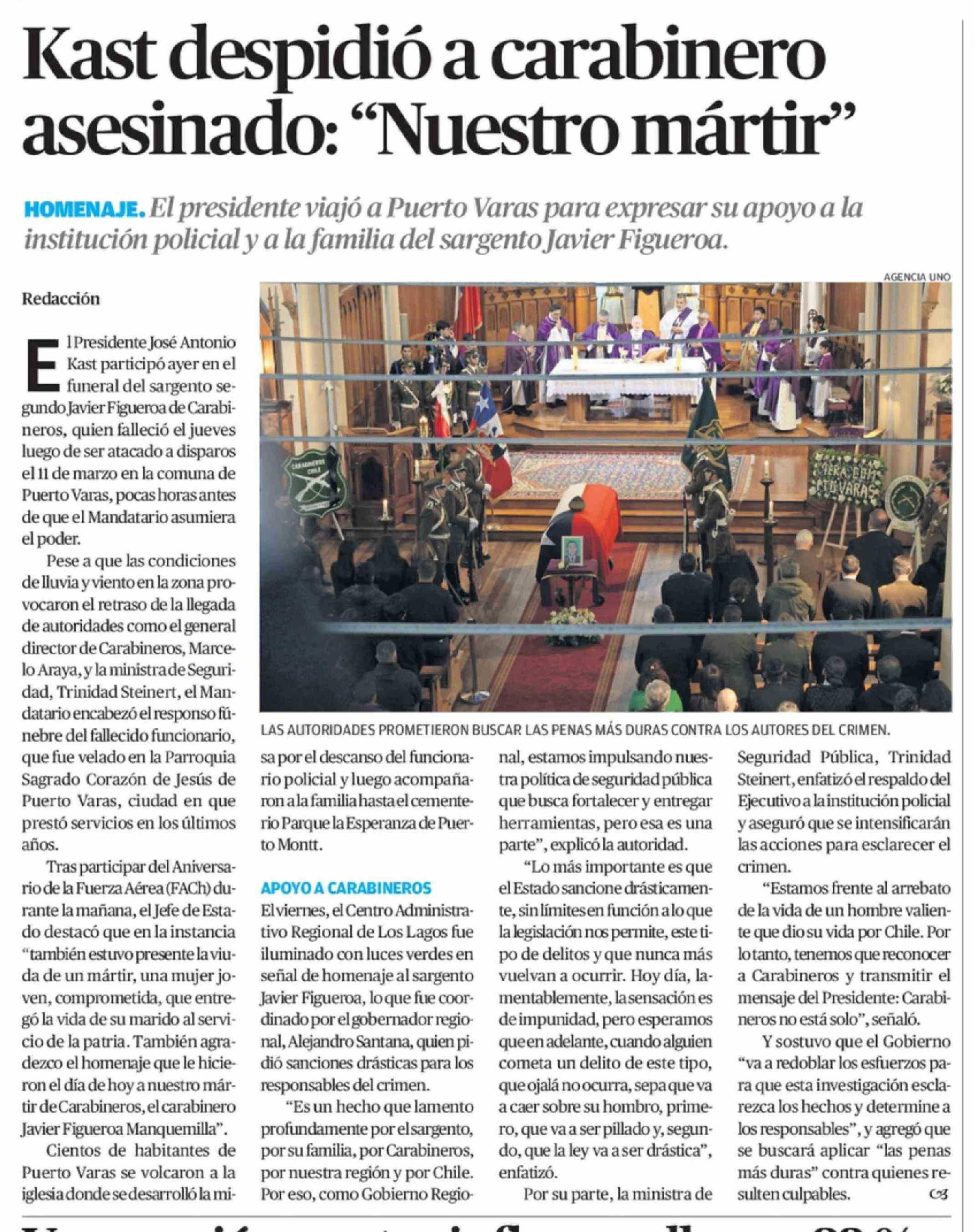 Kast despidió a carabinero asesinado: "Nuestro mártir"