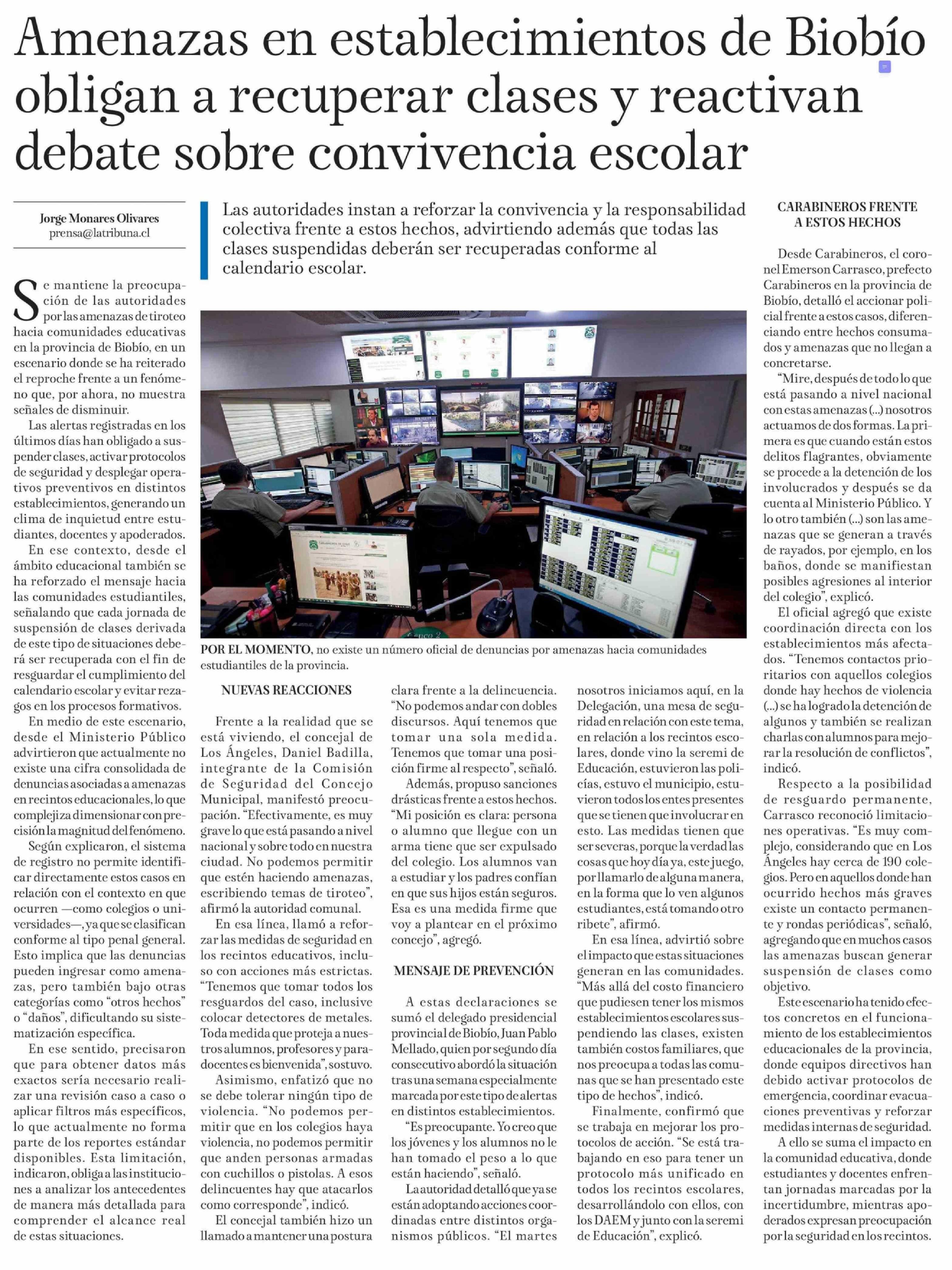 Título: Amenazas en establecimientos de Biobío obligan a recuperar clases y reactivan debate sobre convivencia escolar