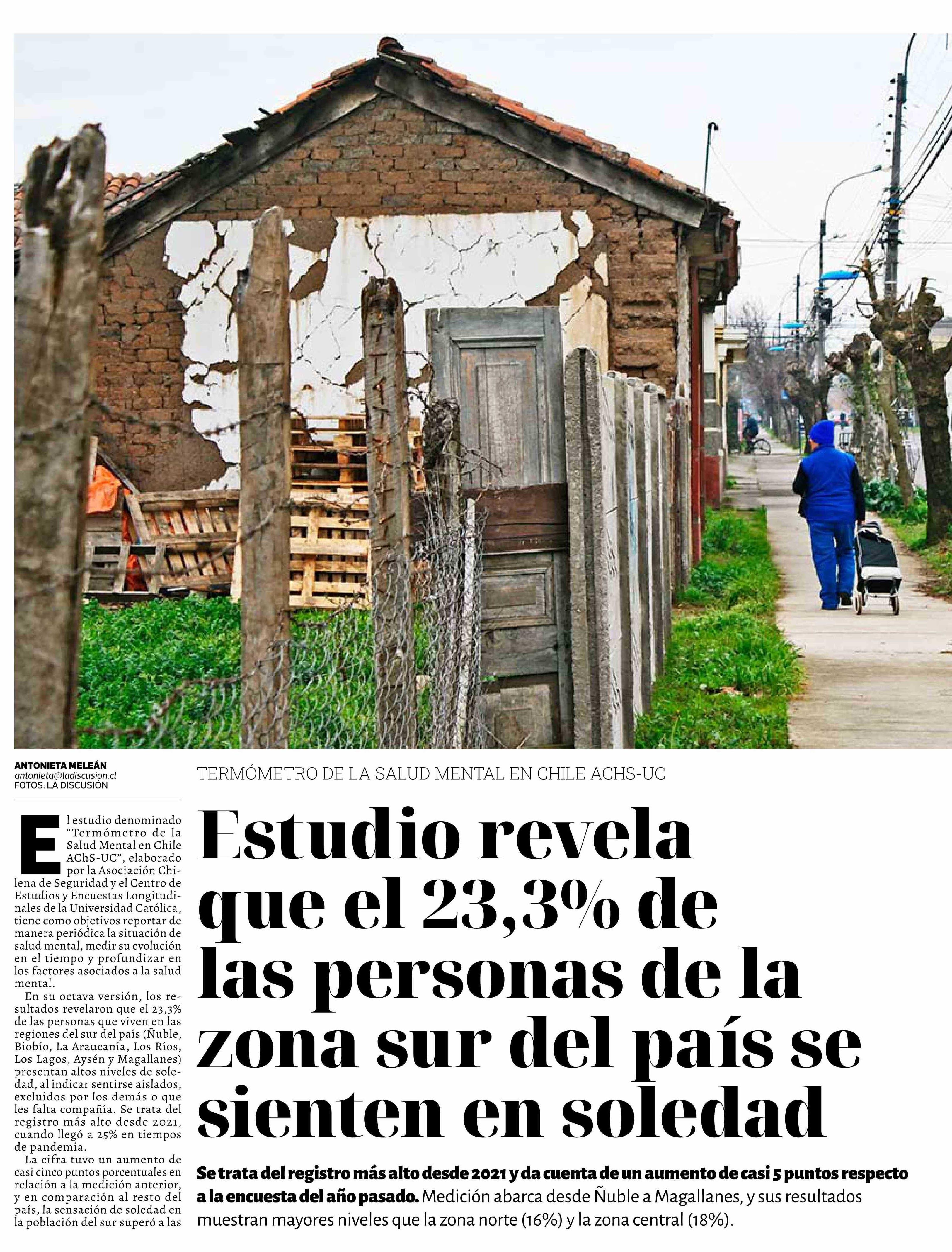 Estudio revela que el 23,3% de las personas de la zona sur del país se sienten en soledad