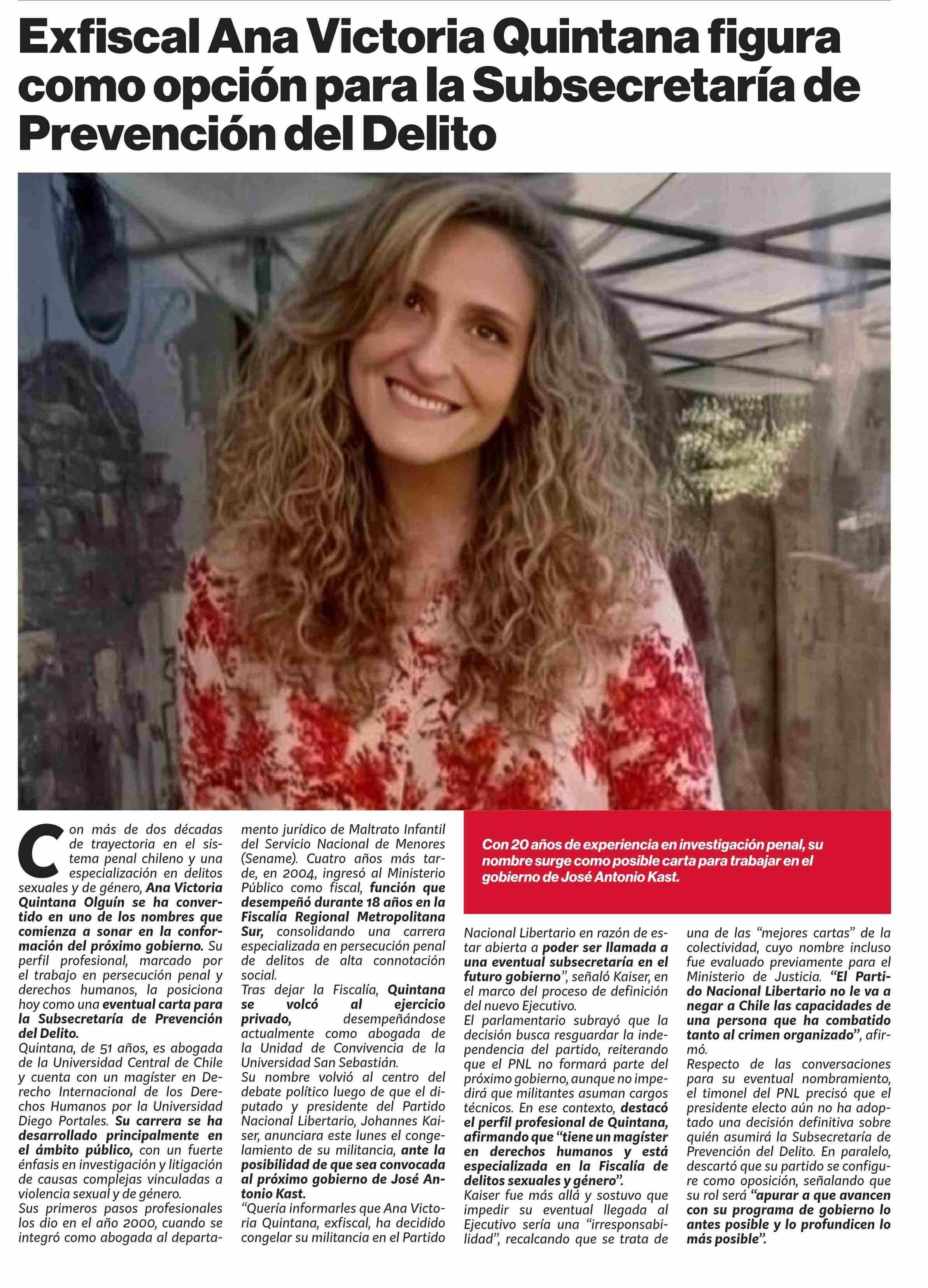 Exfiscal Ana Victoria Quintana figura como opción para la Subsecretaría de Prevención del Delito