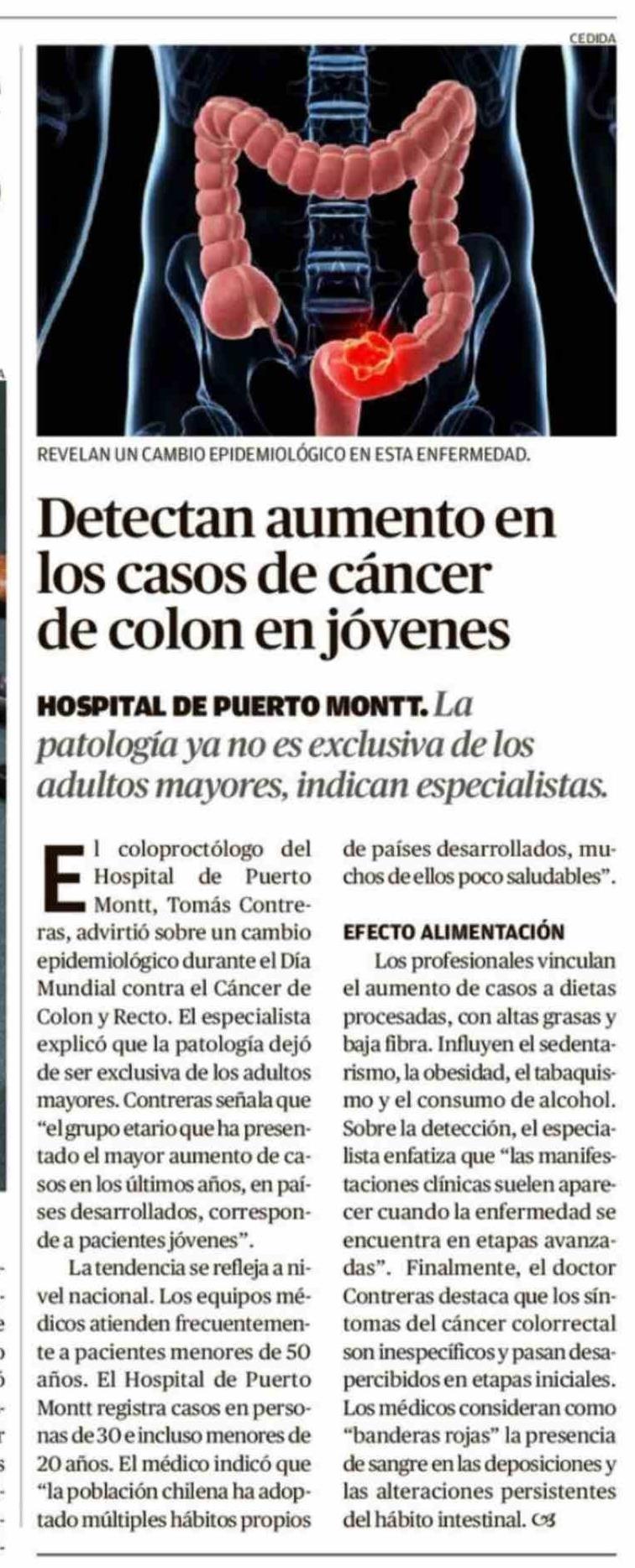 Título: Detectan aumento en los casos de cáncer de colon en jóvenes