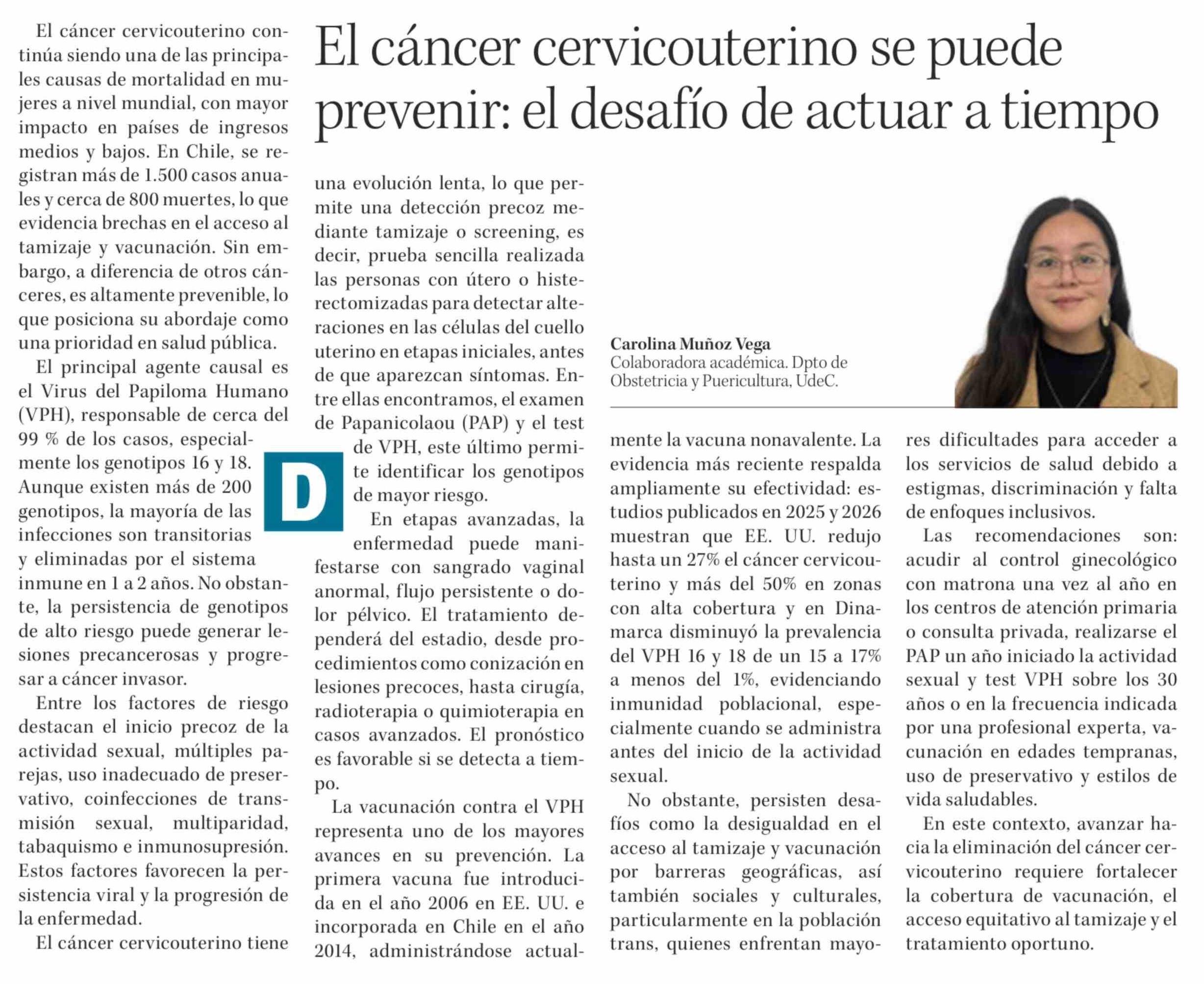Columnas de Opinión: El cáncer cervicouterino se puede prevenir: el desafío de actuar a tiempo