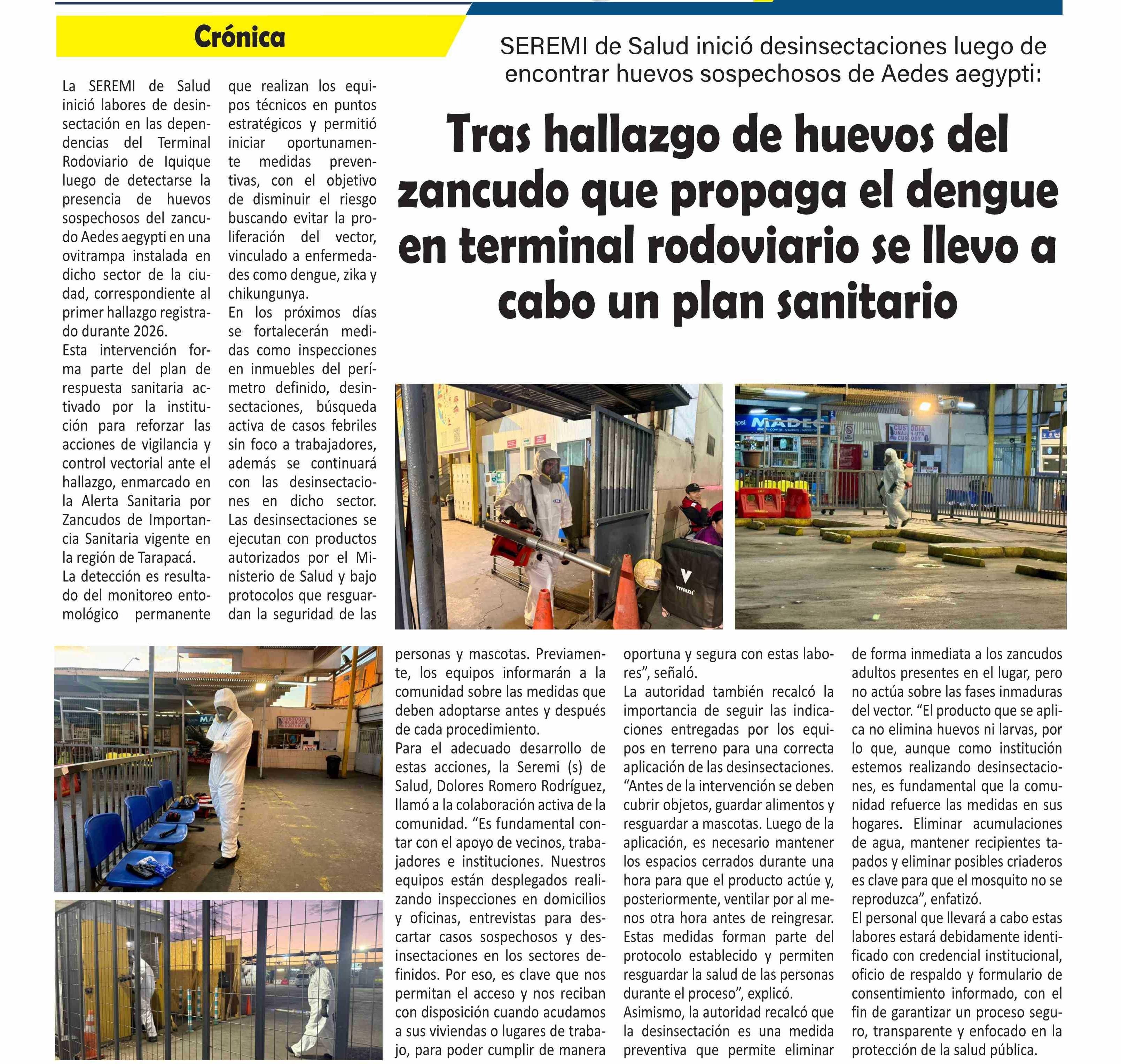 Tras hallazgo de huevos del zancudo que propaga el dengue en terminal rodoviario se llevo a cabo un plan sanitario
