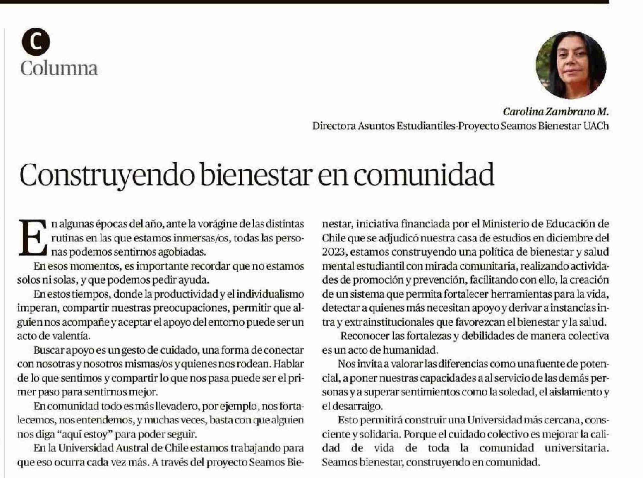 COLUMNAS DE OPINIÓN: Construyendo bienestar en comunidad