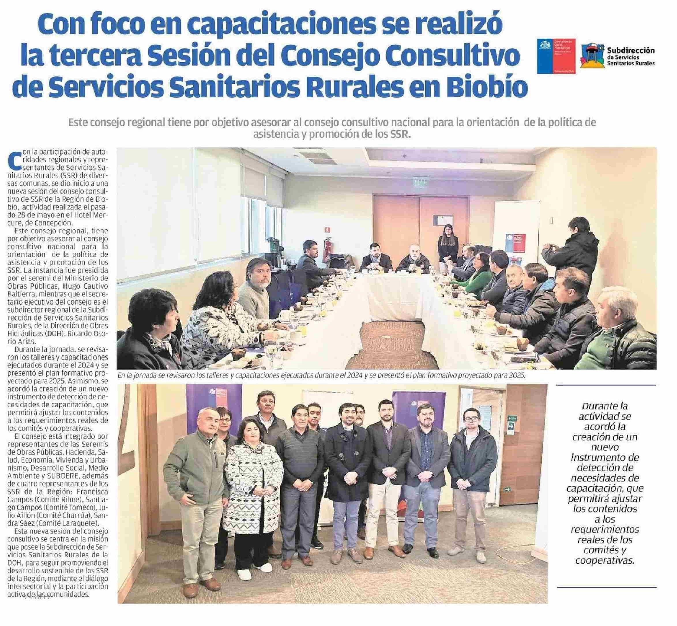 Con foco en capacitaciones se realizó la tercera Sesión del Consejo Consultivo de Servicios Sanitarios Rurales en Biobío