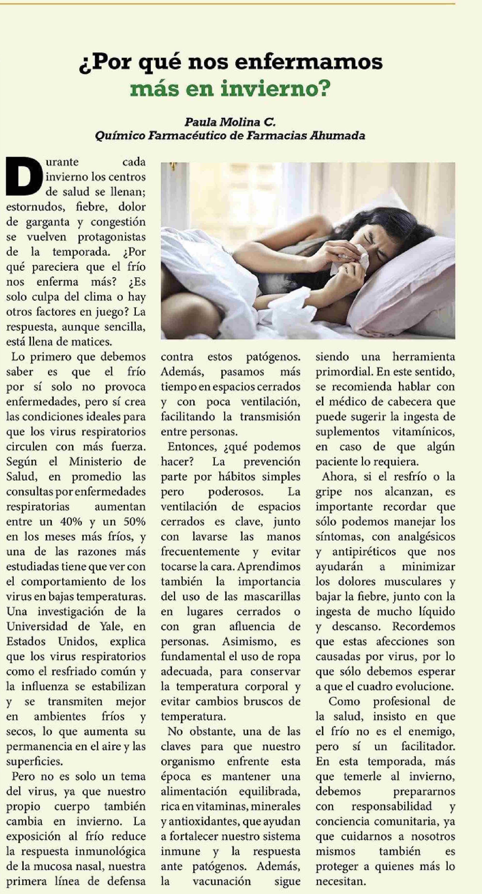 COLUMNAS DE OPINIÓN: ¿Por qué nos enfermamos más en invierno?