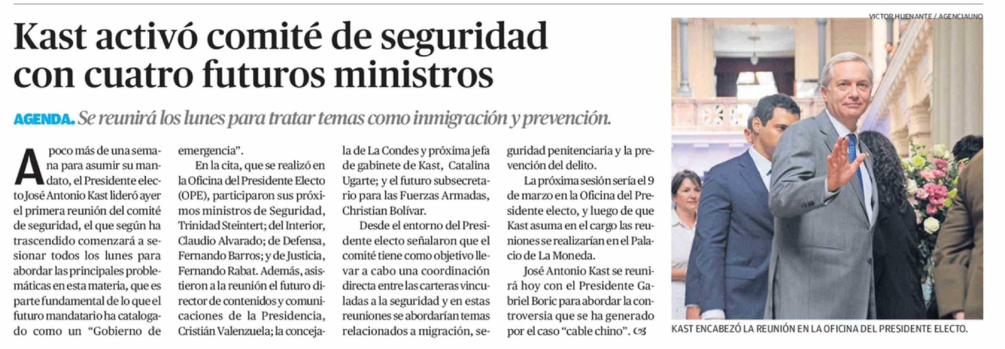 Kast activó comité de seguridad con cuatro futuros ministros
