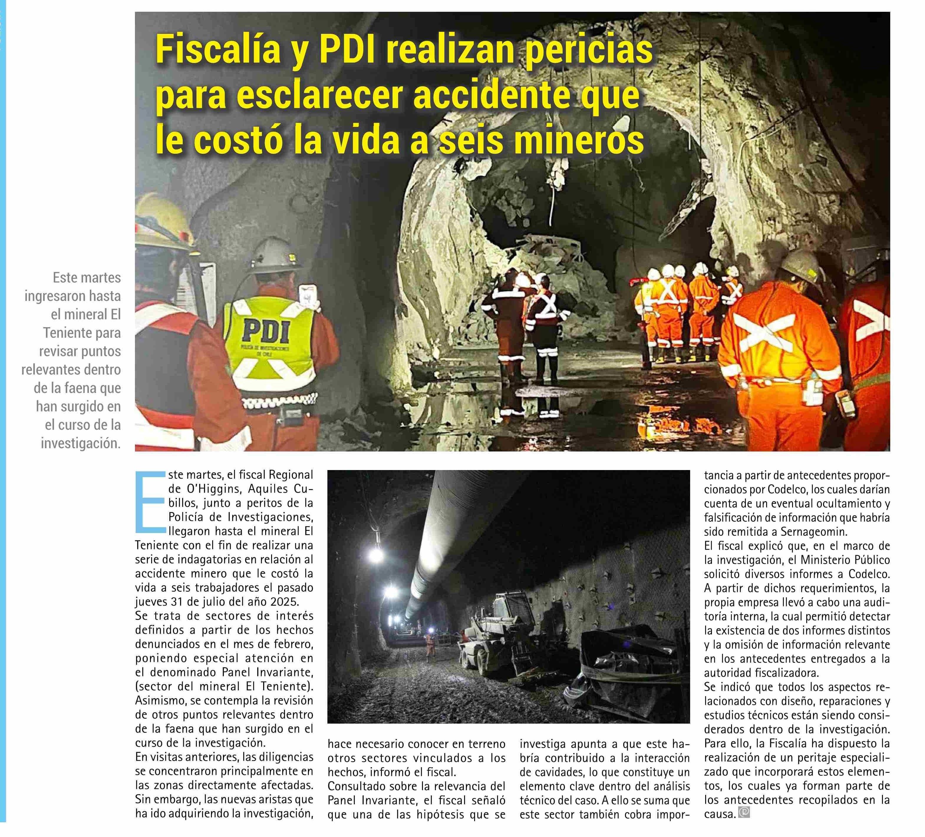 Título: Fiscalía y PDI realizan pericias para esclarecer accidente que le costó la vida a seis mineros.