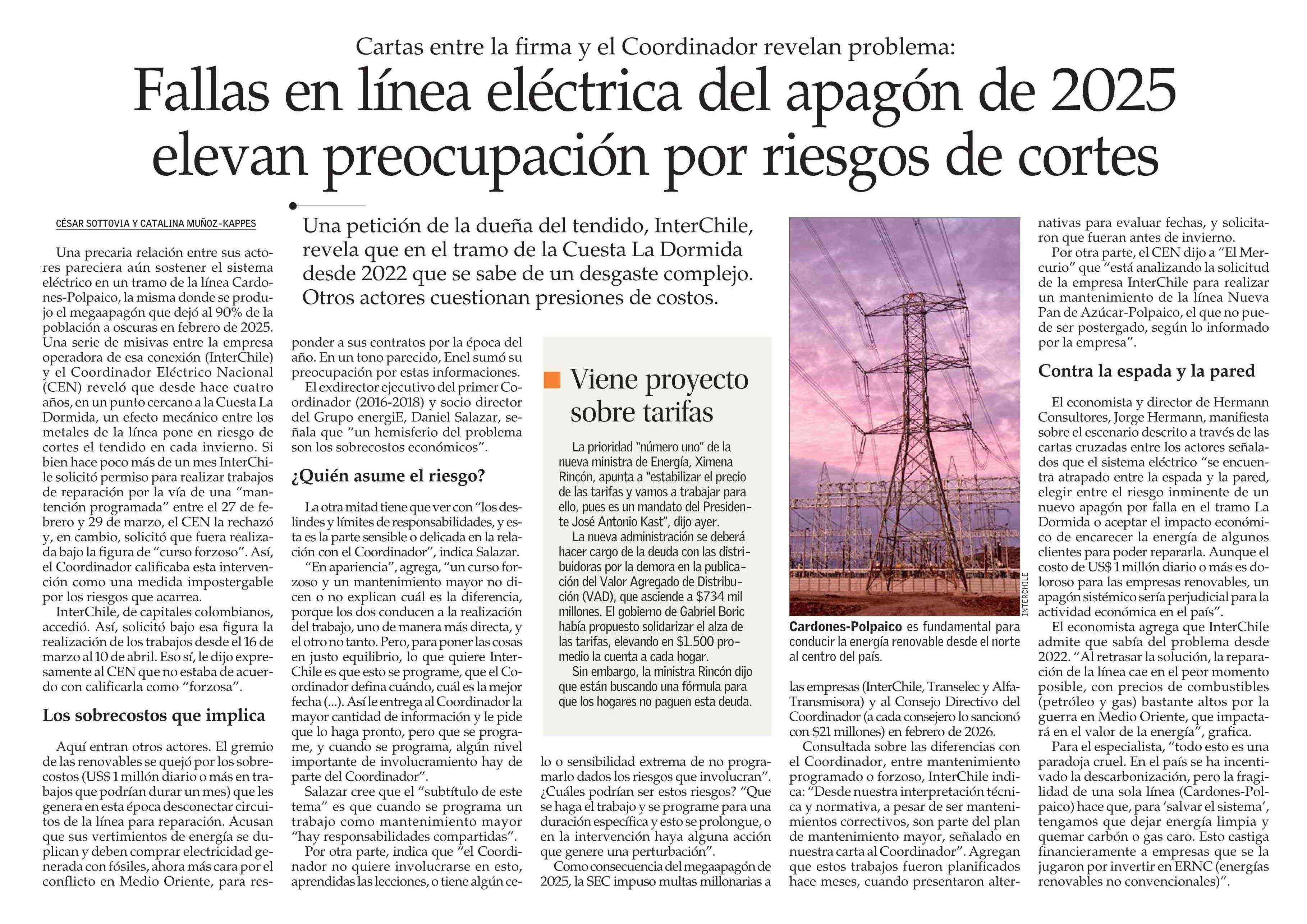 Fallas en línea eléctrica del apagón de 2025 elevan preocupación por riesgos de cortes