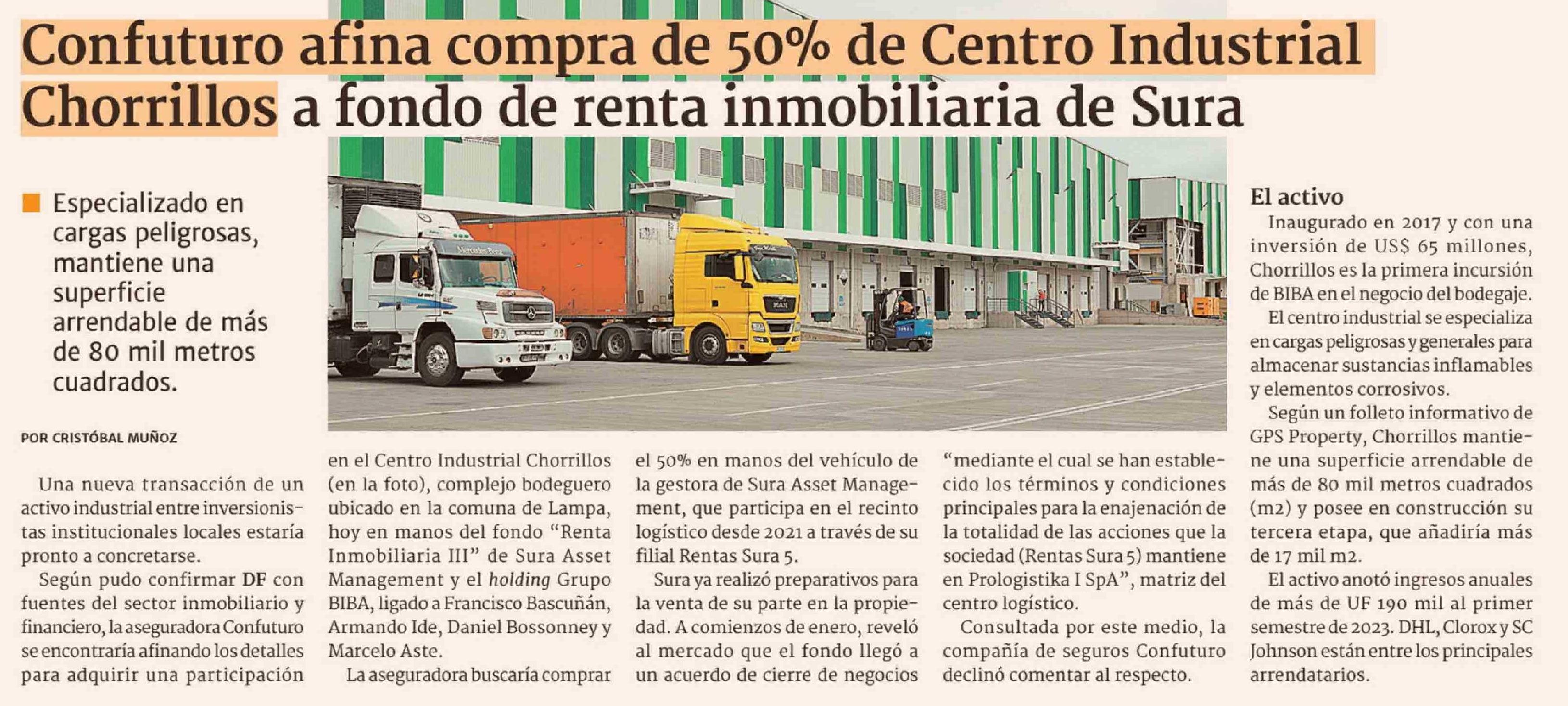 Confuturo afina compra de 50% de Centro Industrial Chorrillos a fondo de renta inmobiliaria de Sura