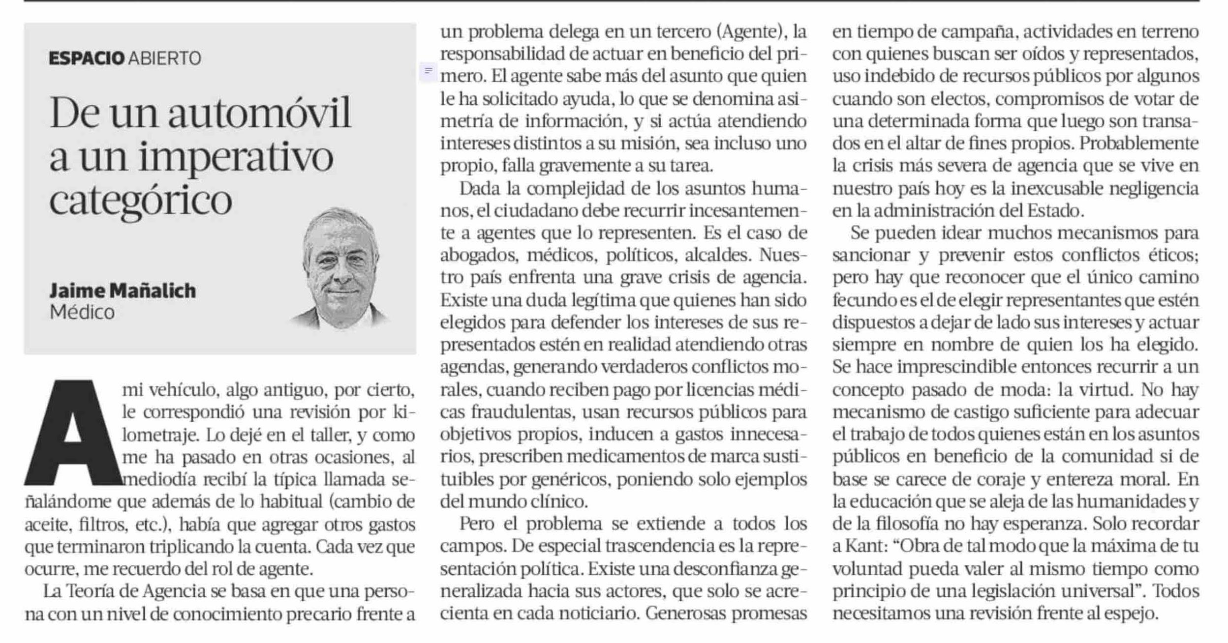 Columnas de Opinión: De un automóvil a un imperativo categórico