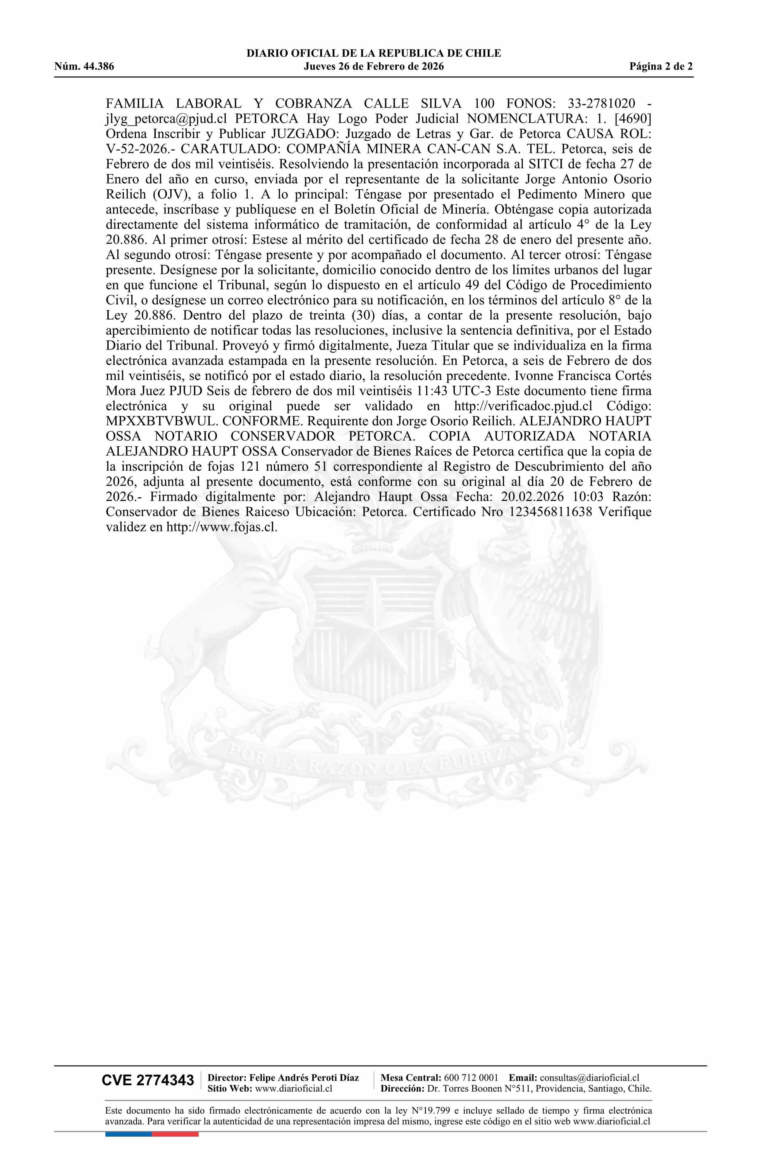 DIARIO OFICIAL CHILE - BOLETÍN OFICIAL DE MINERÍA (DIARIO OFICIAL CHILE – BOM – PEDIMENTOS MINEROS)