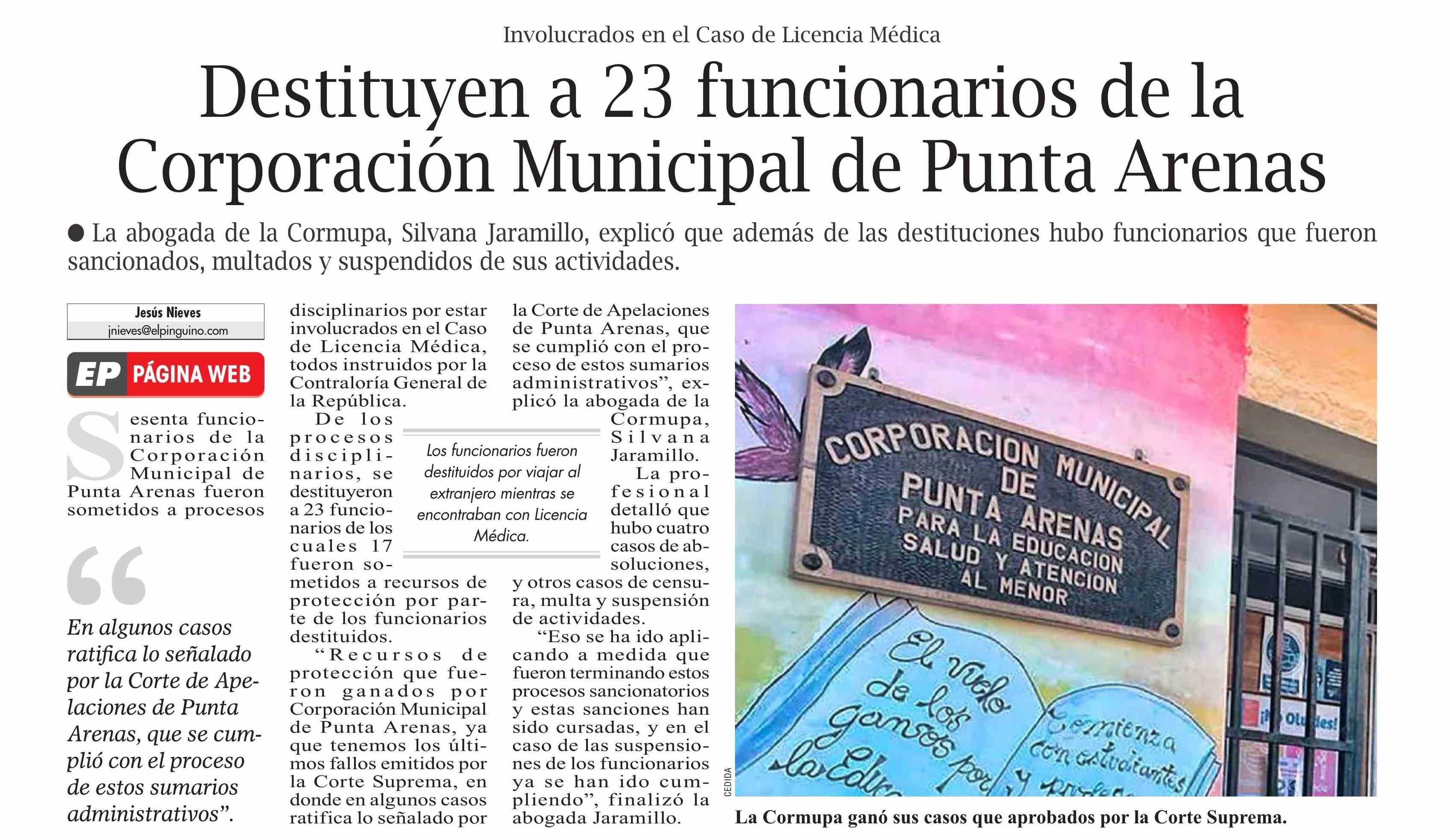 Destituyen a 23 funcionarios de la Corporación Municipal de Punta Arenas