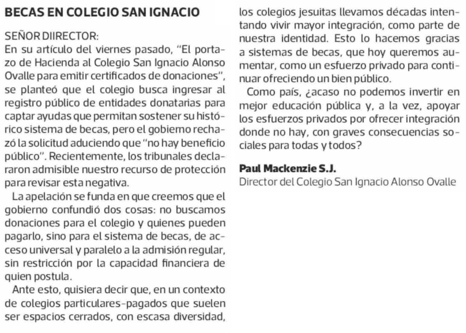 CARTAS: BECAS EN COLEGIO SAN IGNACIO