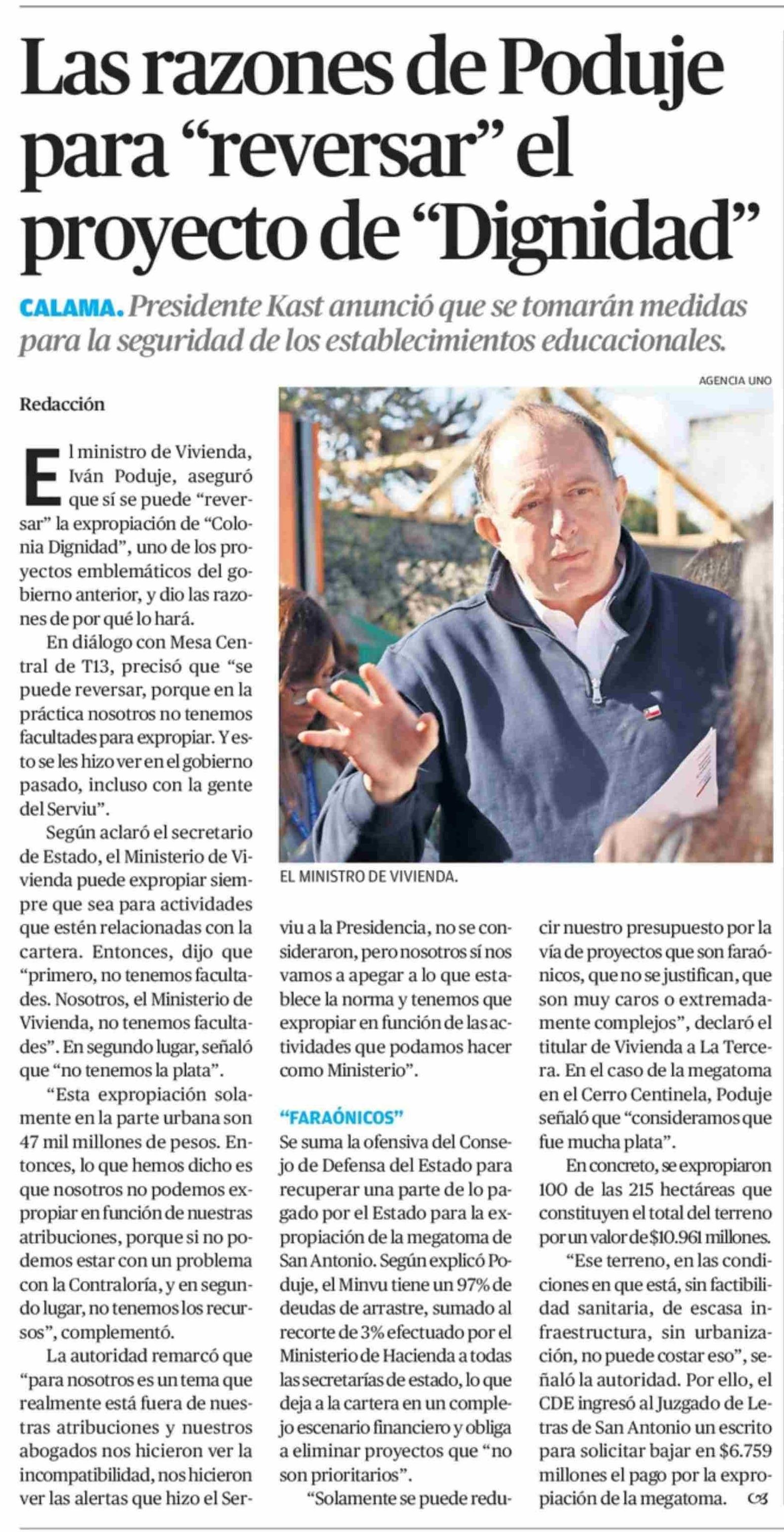 Las razones de Poduje para “reversar” el proyecto de “Dignidad”