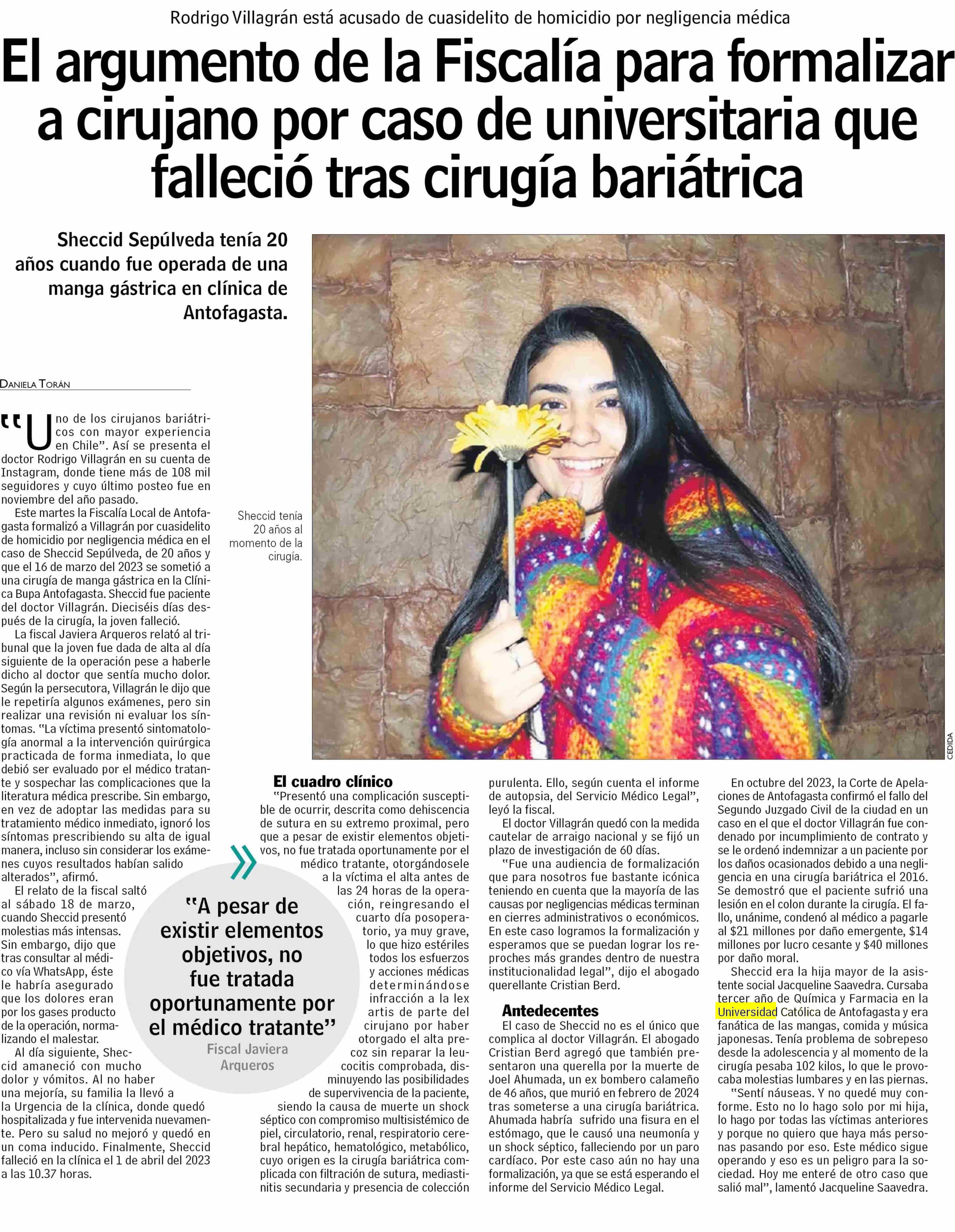 El argumento de la Fiscalia para formalizar a Cirujano por caso de universitaria que falleció tras cirugía bariátrica