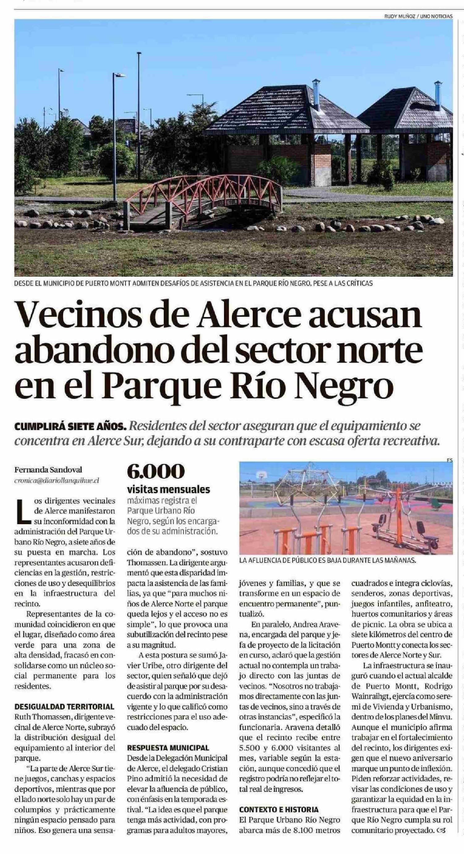 Vecinos de Alerce acusan abandono del sector norte en el Parque Río Negro
