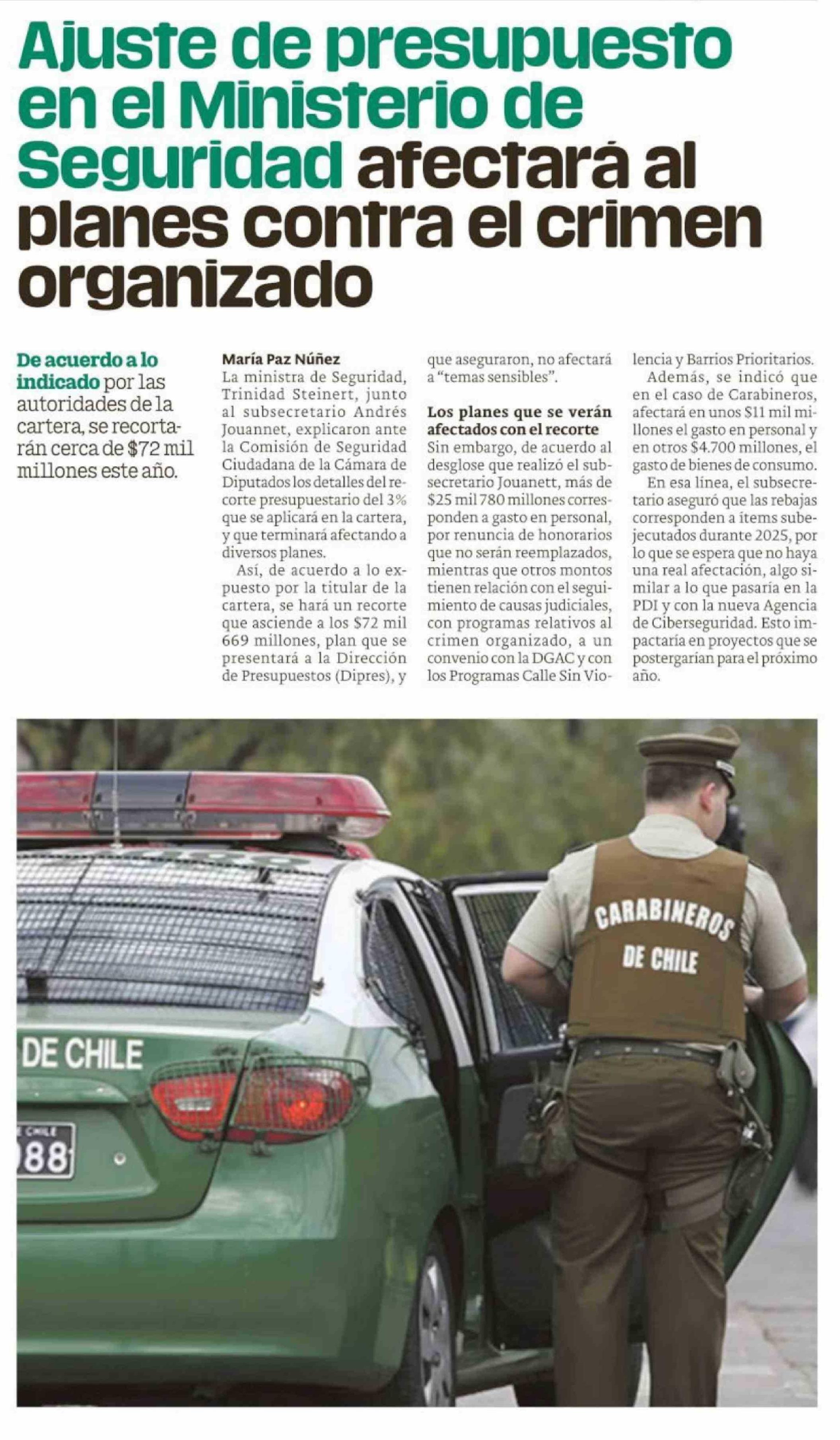 Ajuste de presupuesto en el Ministerio de Seguridad afectara al planes contra el crimen organizado