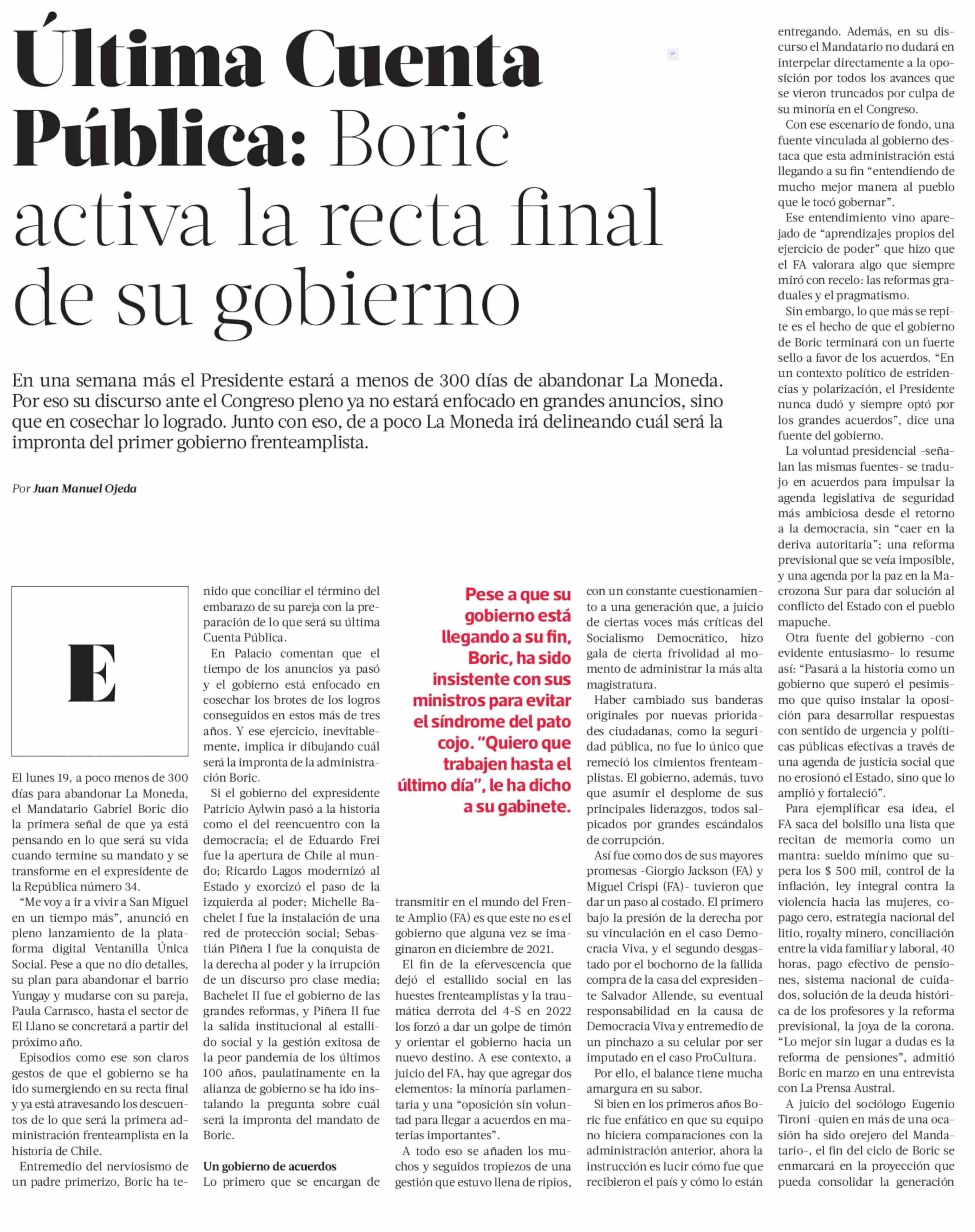 Ultima Cuenta Pública: Boric activa la recta final de su gobierno