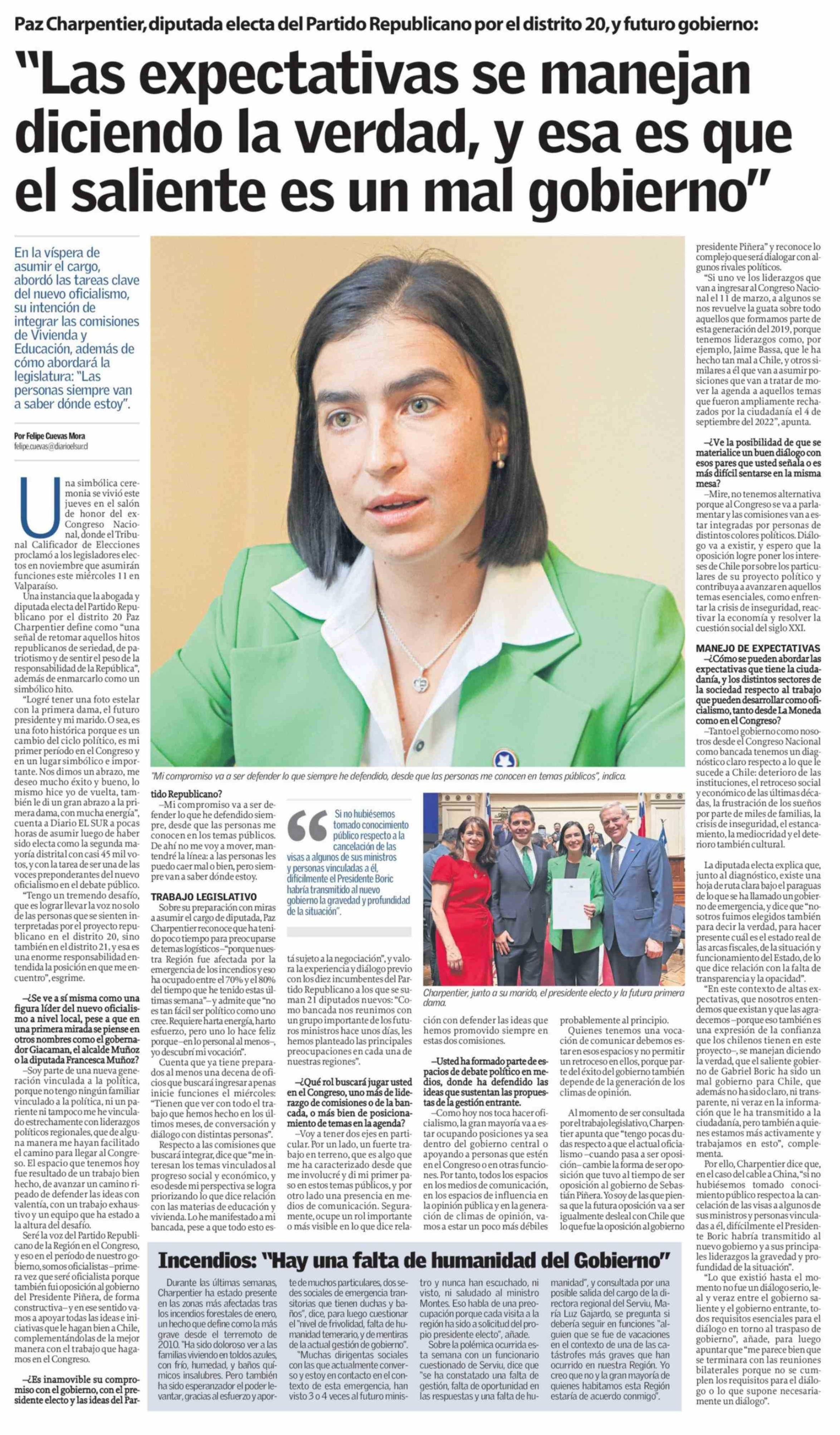 "Las expectativas se manejan diciendo la verdad, y esa es que el saliente es un mal gobierno"