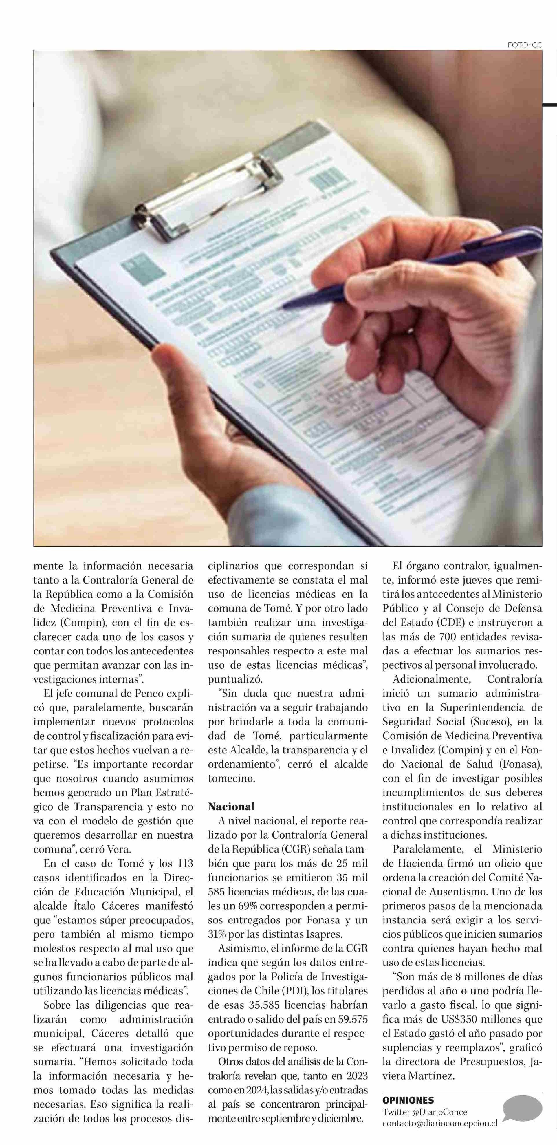 Municipios de Biobío instruyen sumarios por casos de mal uso de licencias médicas detectados por Contraloría