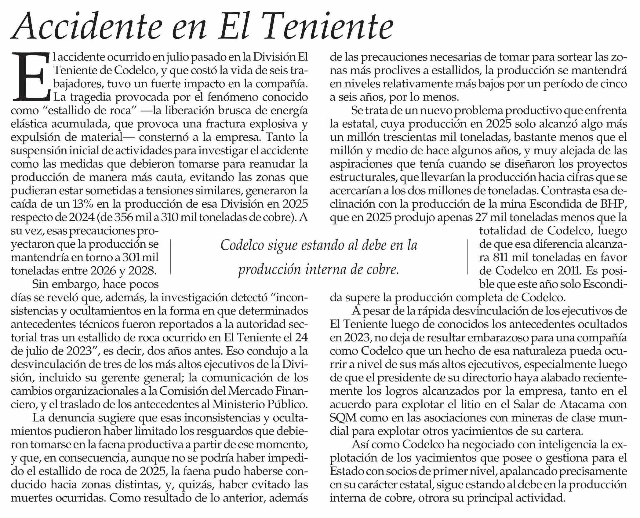 Título: Editorial: Accidente en El Teniente