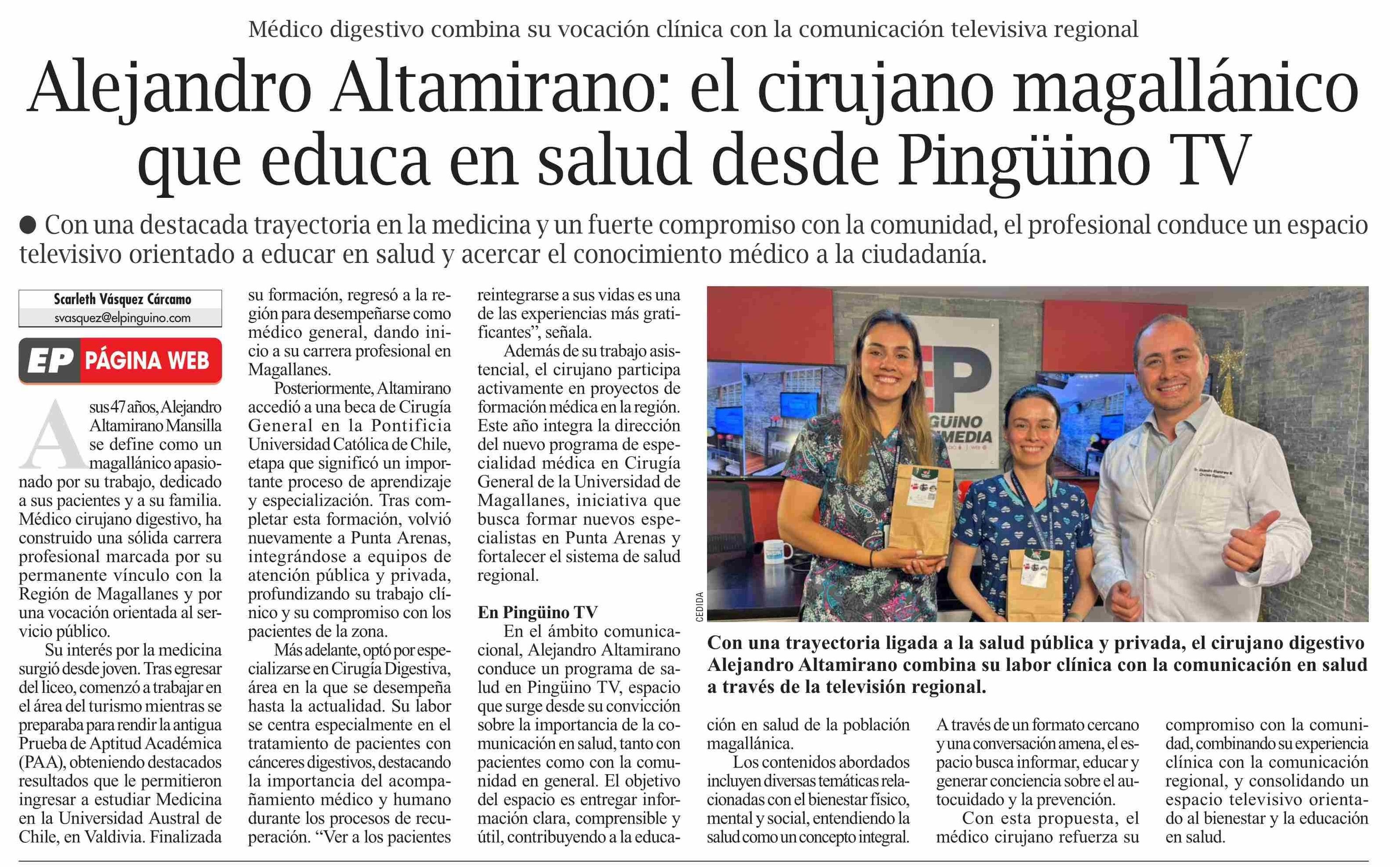 Título: Alejandro Altamirano: el cirujano magallánico que educa en salud desde Pingüino TV