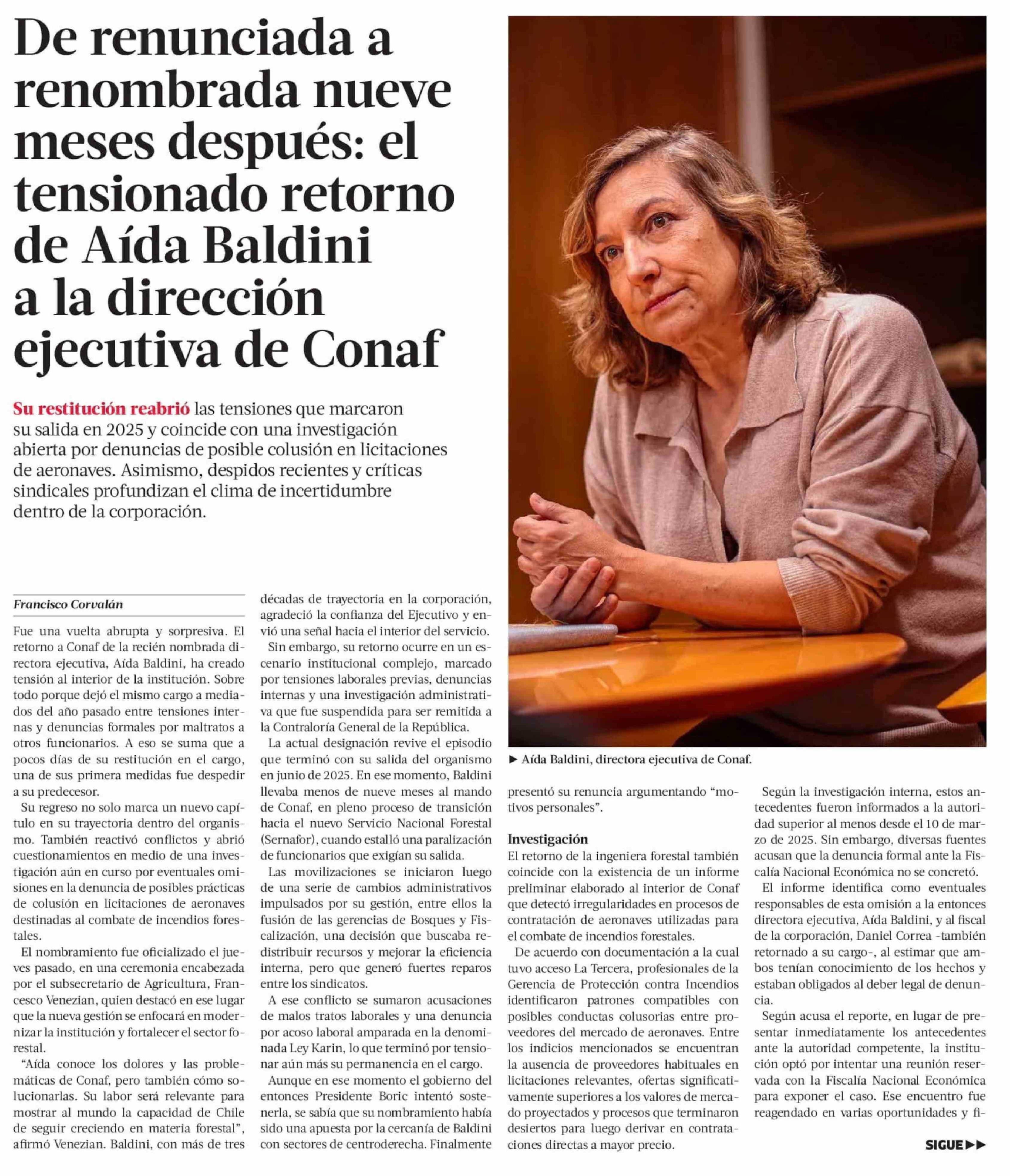 De renunciada a renombrada nueve meses después: el tensionado retorno de Aída Baldini a la dirección ejecutiva de Conaf