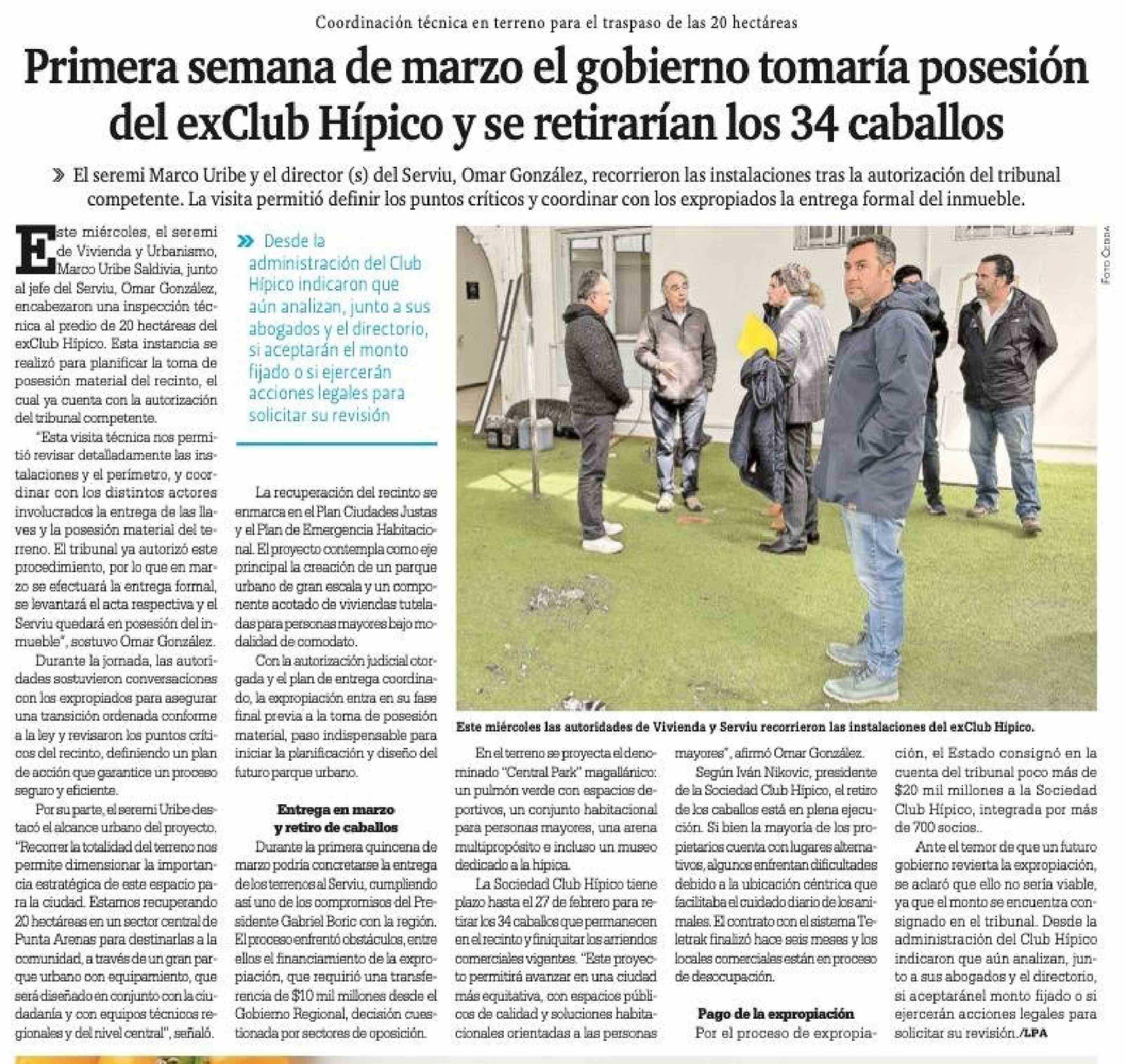 Primera semana de marzo el gobierno tomaría posesión del exClub Hípico y se retirarían los 34 caballos