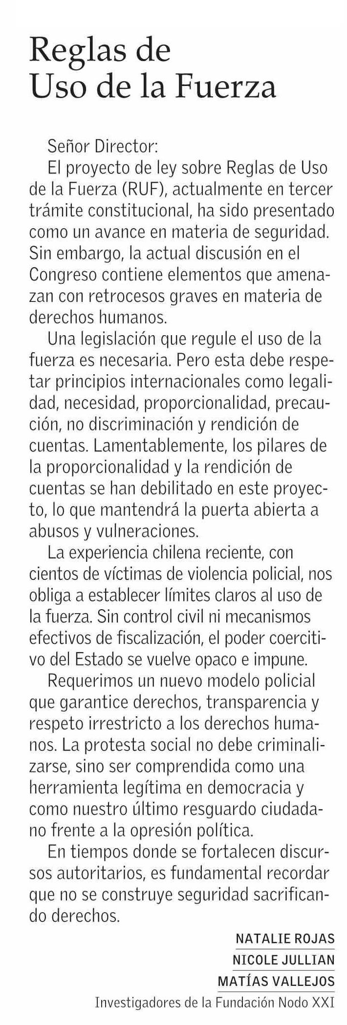 CARTAS: Reglas de Uso de la Fuerza