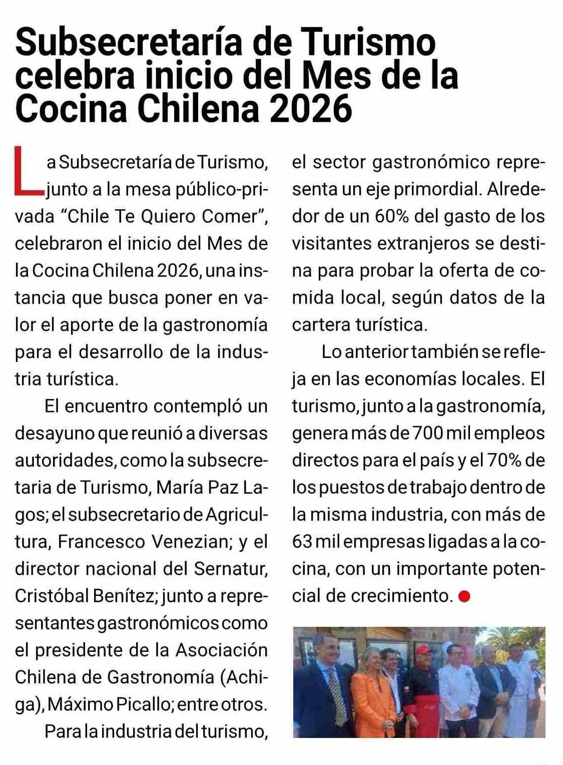 Subsecretaría de Turismo celebra inicio del Mes de la Cocina Chilena 2026