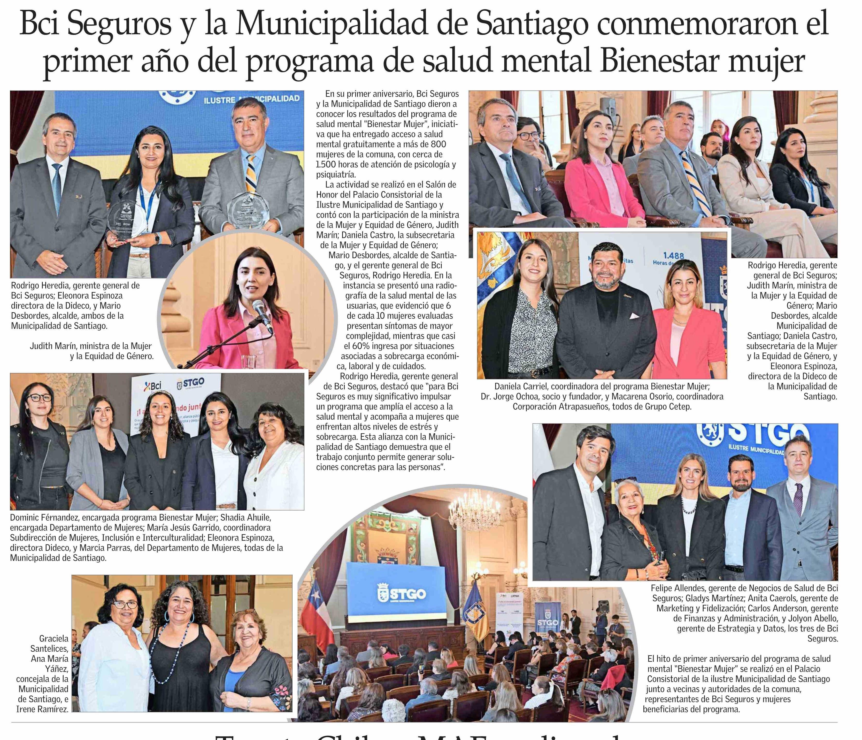 Bci Seguros y la Municipalidad de Santiago conmemoraron el primer año del programa de salud mental Bienestar mujer