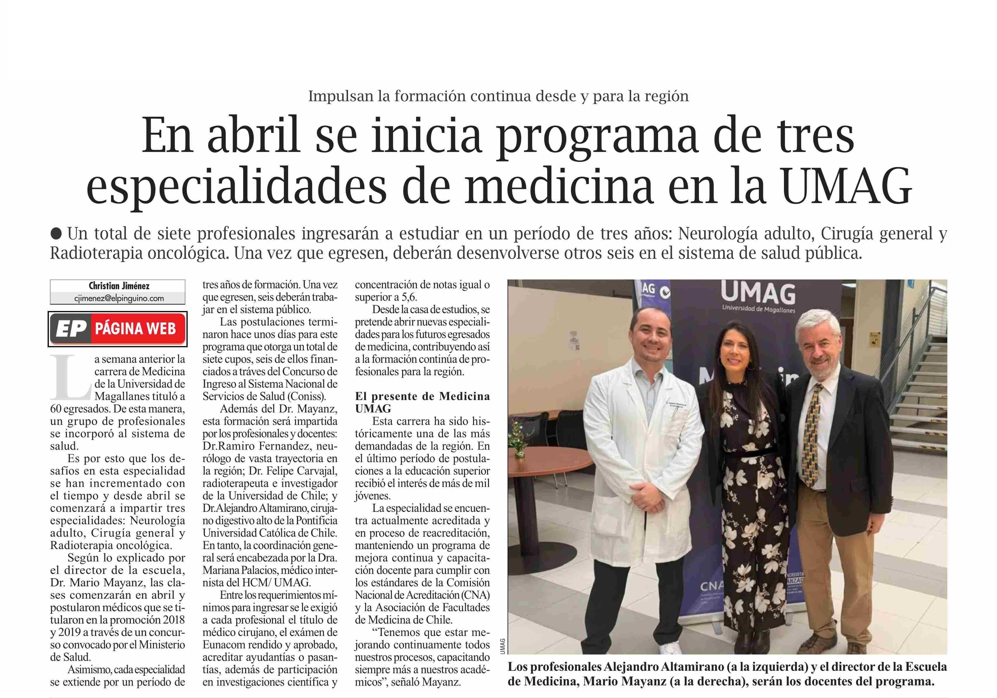 En abril se inicia programa de tres especialidades de medicina en la UMAG