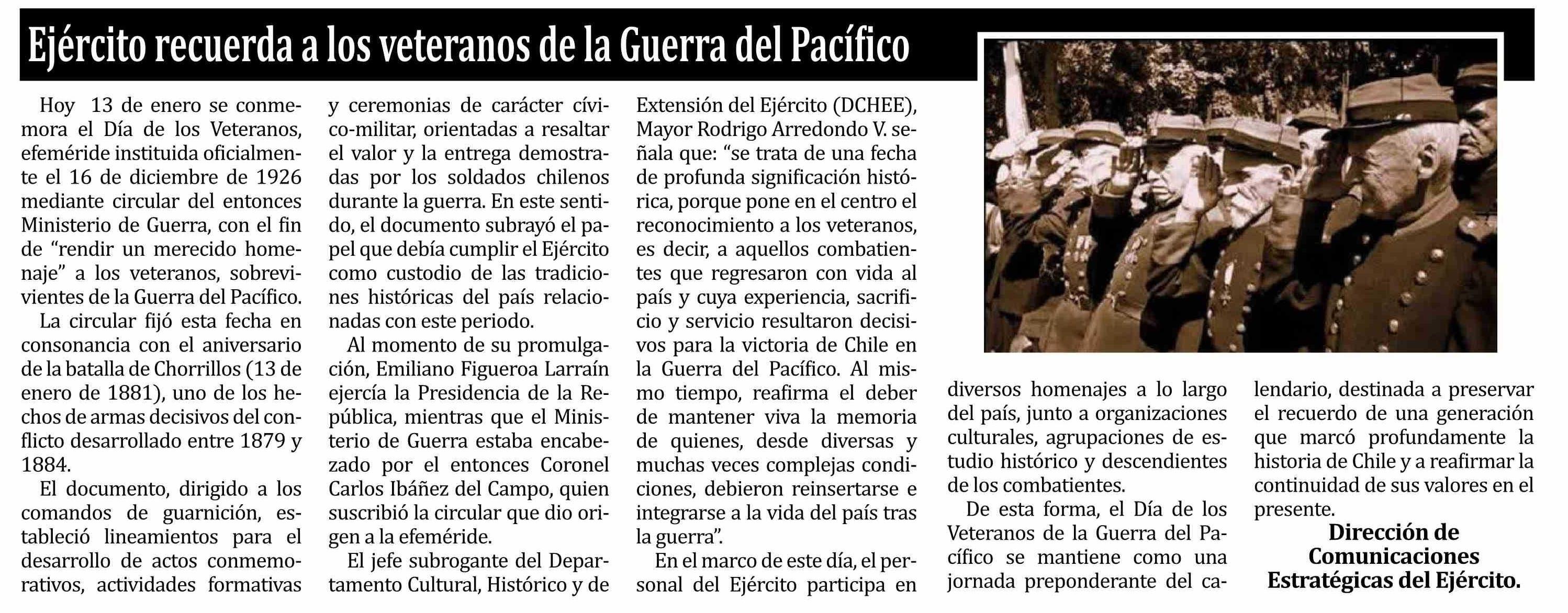Columnas de Opinión: Ejército recuerda a los veteranos de la Guerra del Pacífico