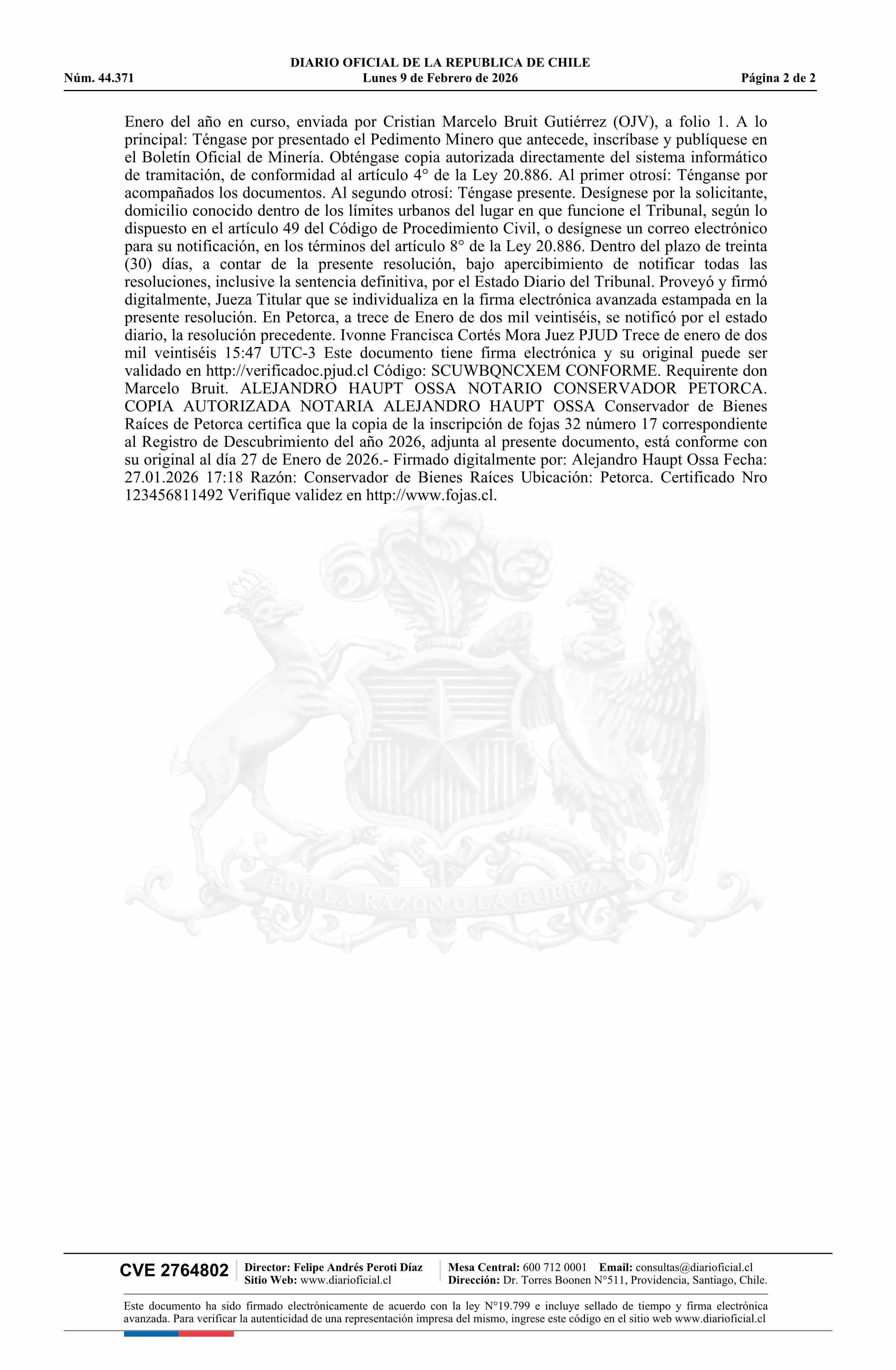 DIARIO OFICIAL CHILE - BOLETÍN OFICIAL DE MINERÍA (DIARIO OFICIAL CHILE – BOM – PEDIMENTOS MINEROS)