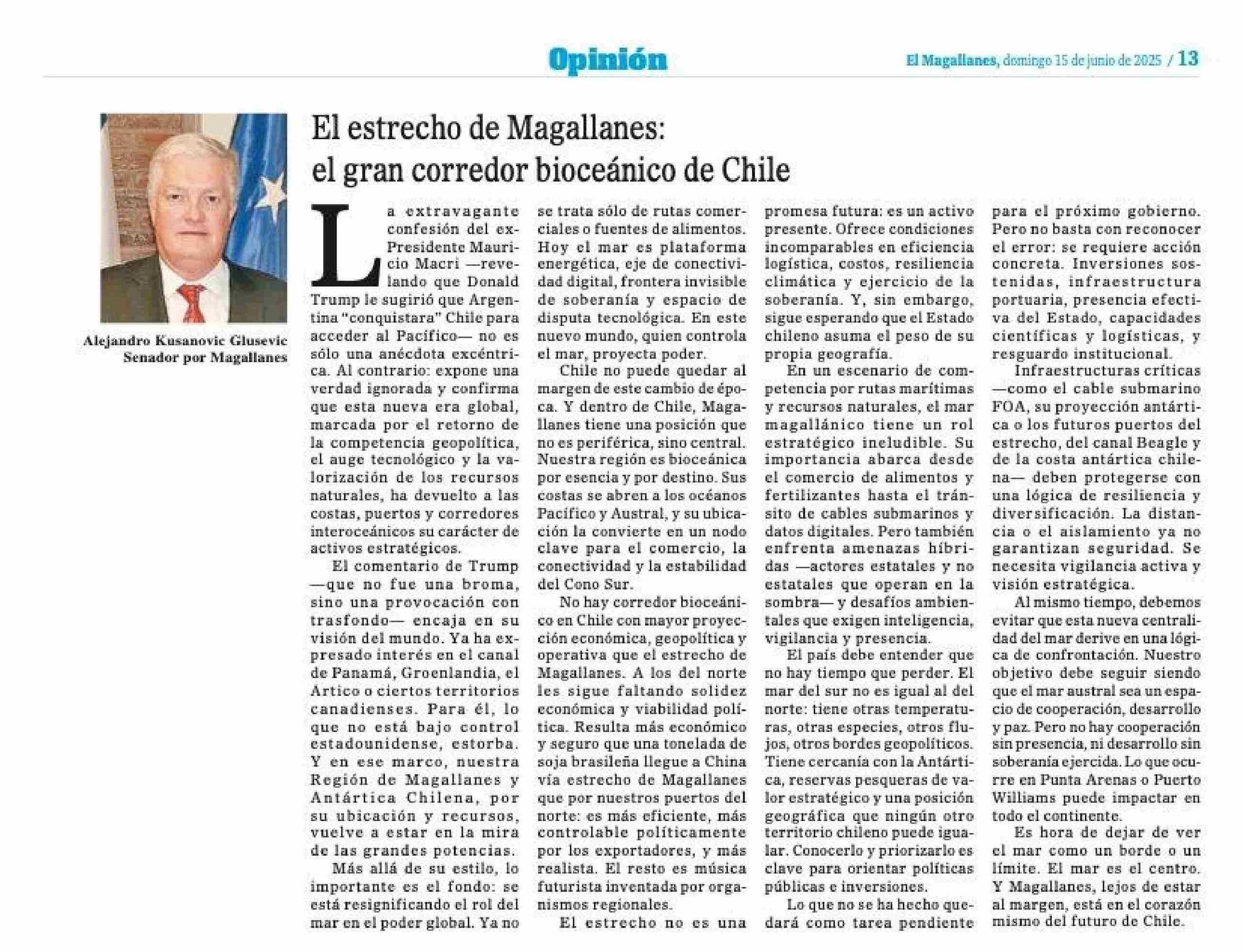COLUMNAS DE OPINIÓN: el gran corredor bioceánico de Chile