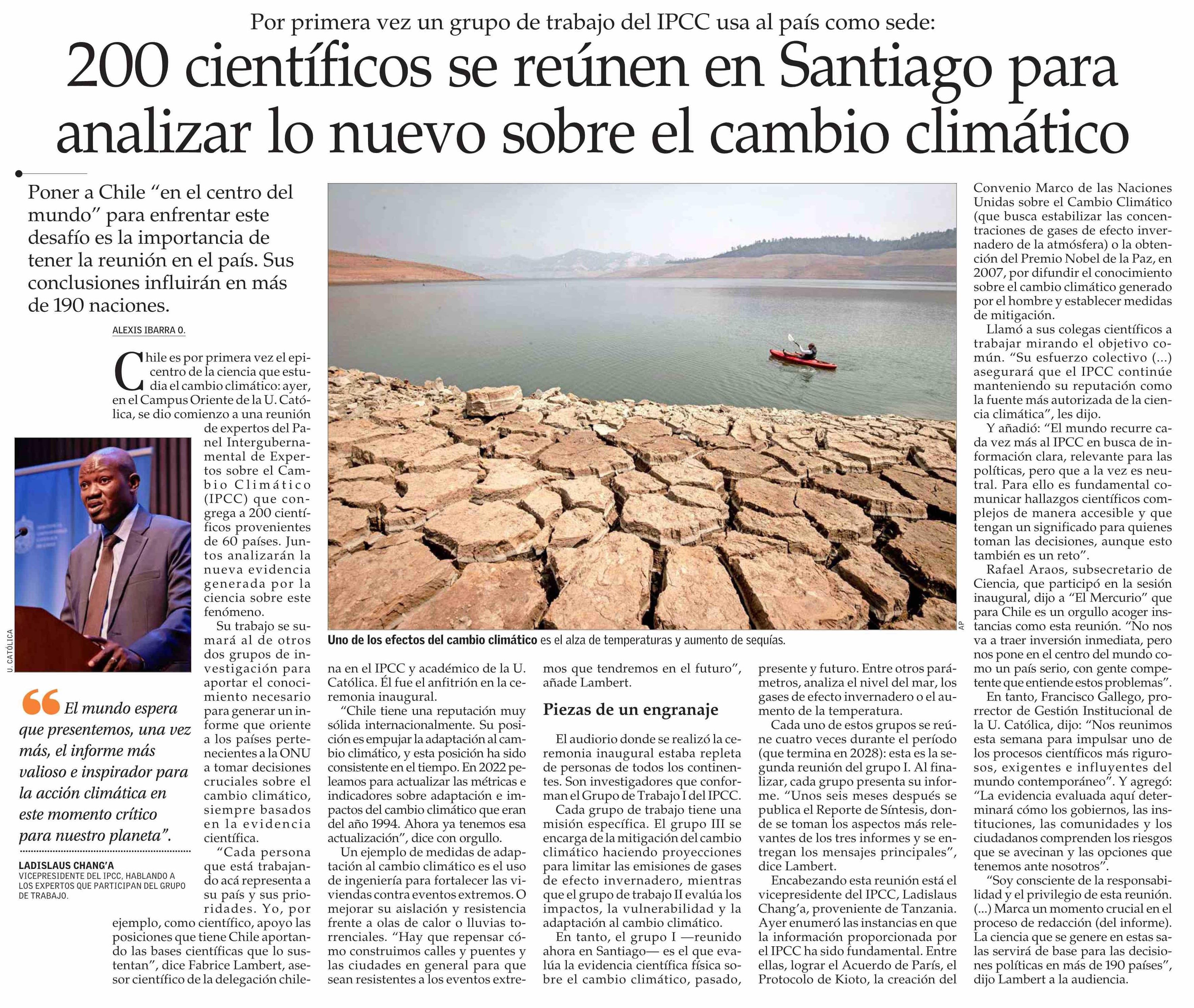 Título: 200 Científicos se reúnen en Santiago para analizar lo nuevo sobre el cambio climático