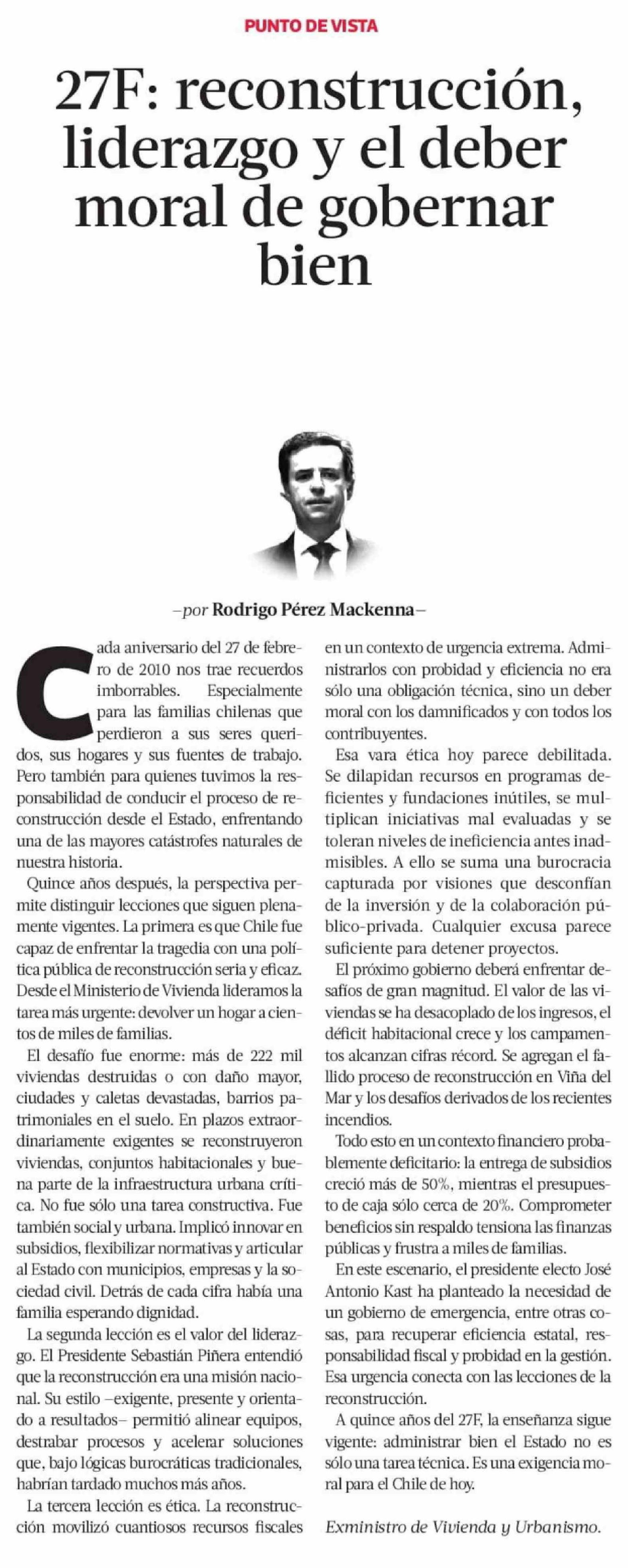 Columnas de Opinión: 27F: reconstrucción, liderazgo y el deber moral de gobernar bien