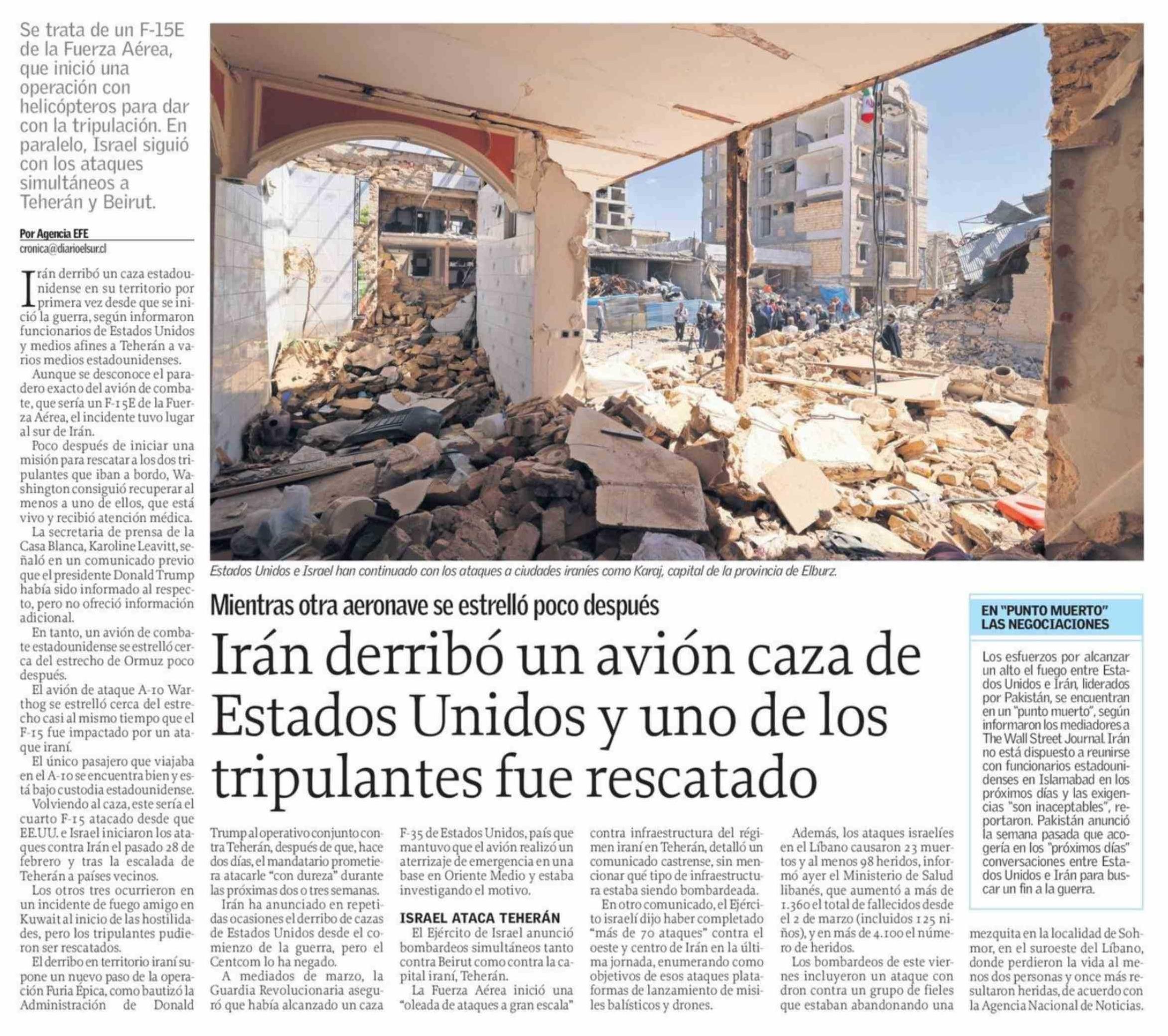 Irán derribó un avión caza de Estados Unidos y uno de los tripulantes fue rescatado