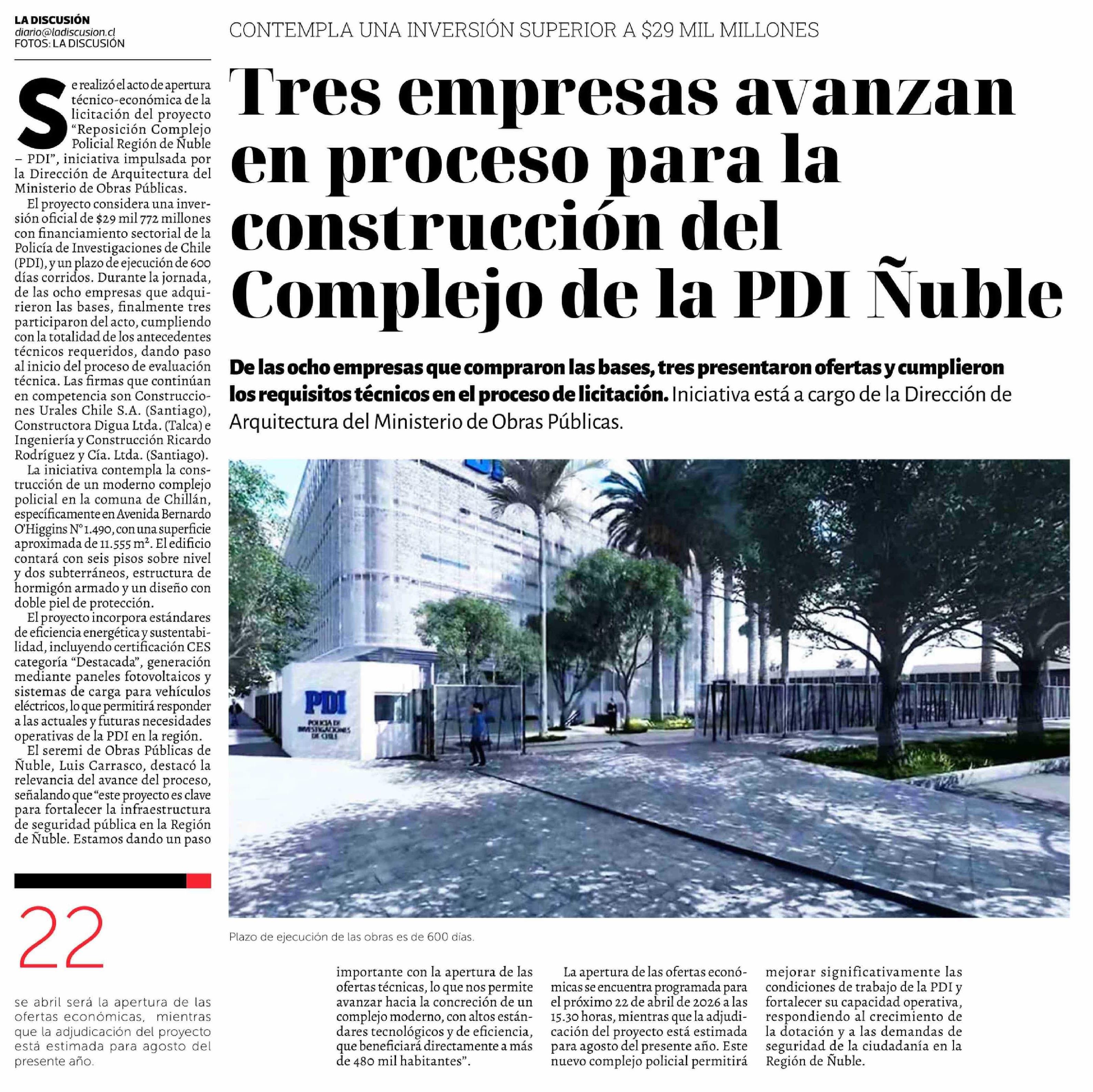 Tres empresas avanzan en proceso para la construcción del Complejo de la PDI Ñuble