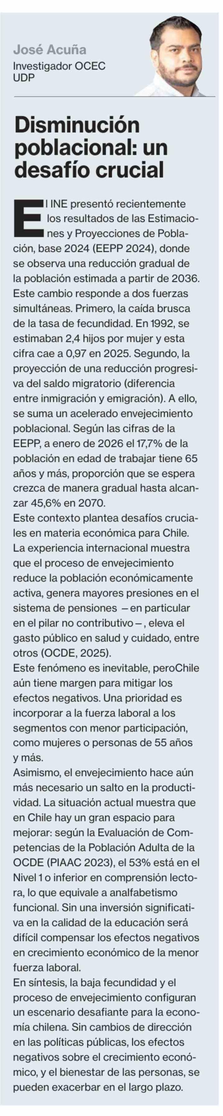 Columnas de Opinión: Disminución poblacional: un desafío crucial