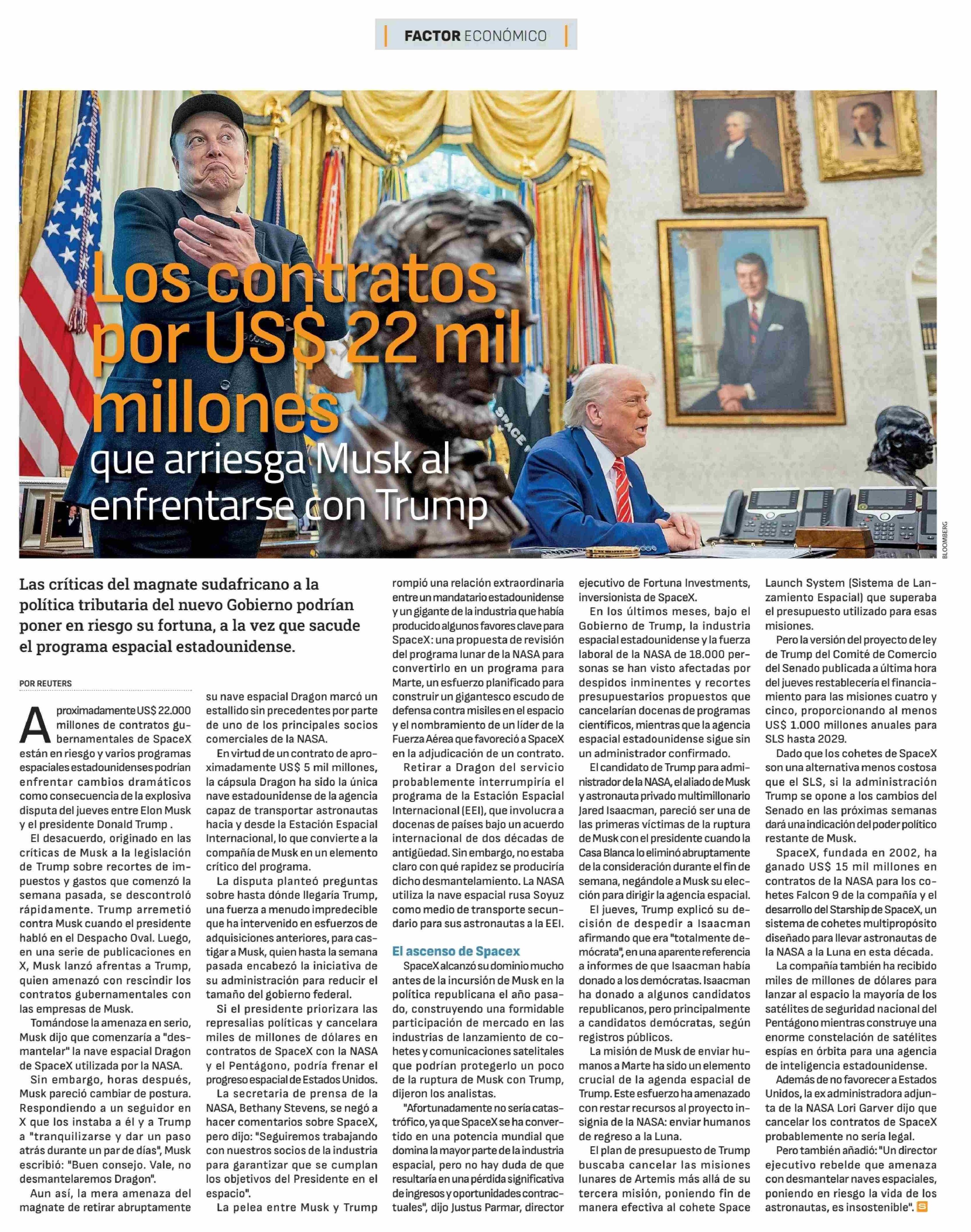 Los contratos por US$ 22 mil millones que arriesga MUsk al enfrentarse con Trump
