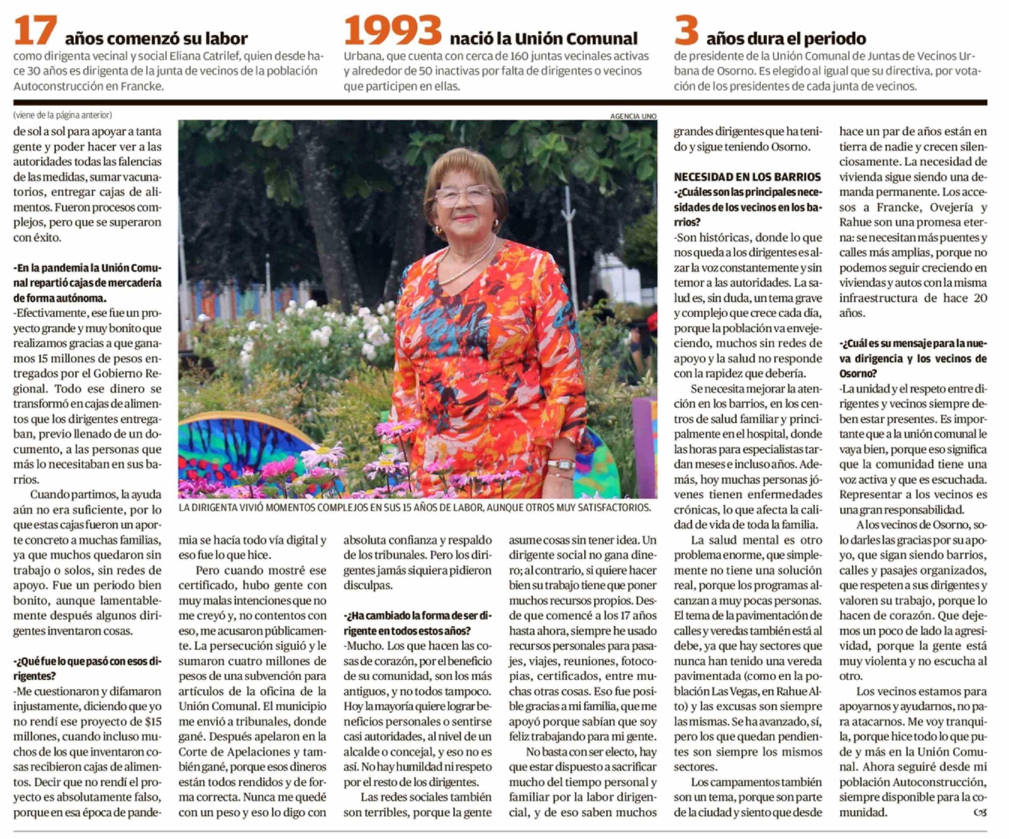 Fin de un ciclo: presidenta de la Unión Comunal Urbana deja el cargo tras 15 años de gestión