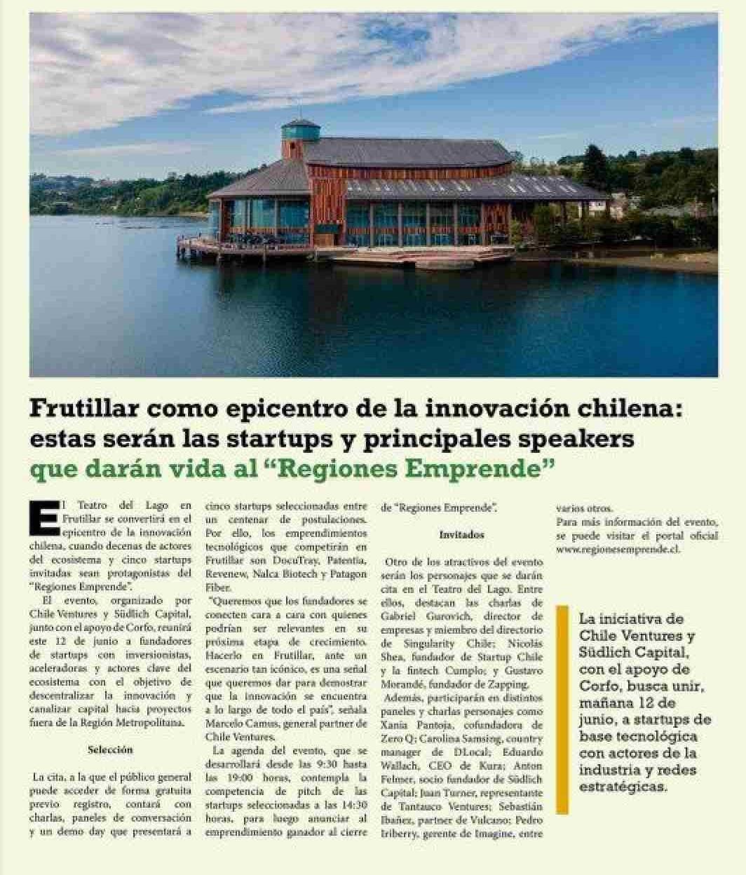 Frutillar como epi de la i ción chil estas serán las startups y principales speakers que darán vida al “Regiones Emprende”