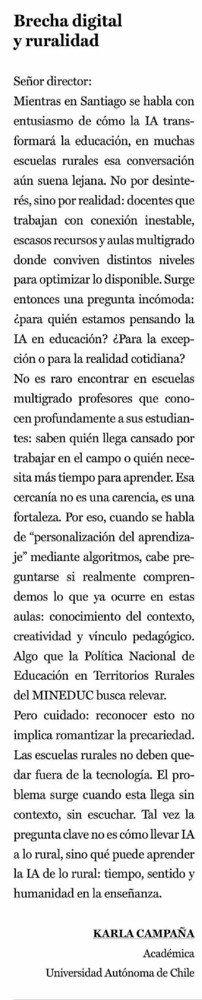 Cartas: Brecha digital y ruralidad